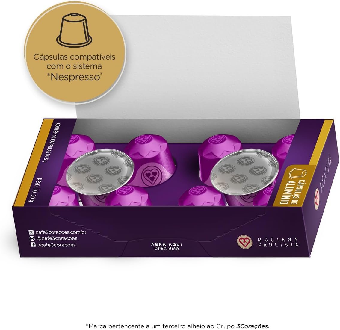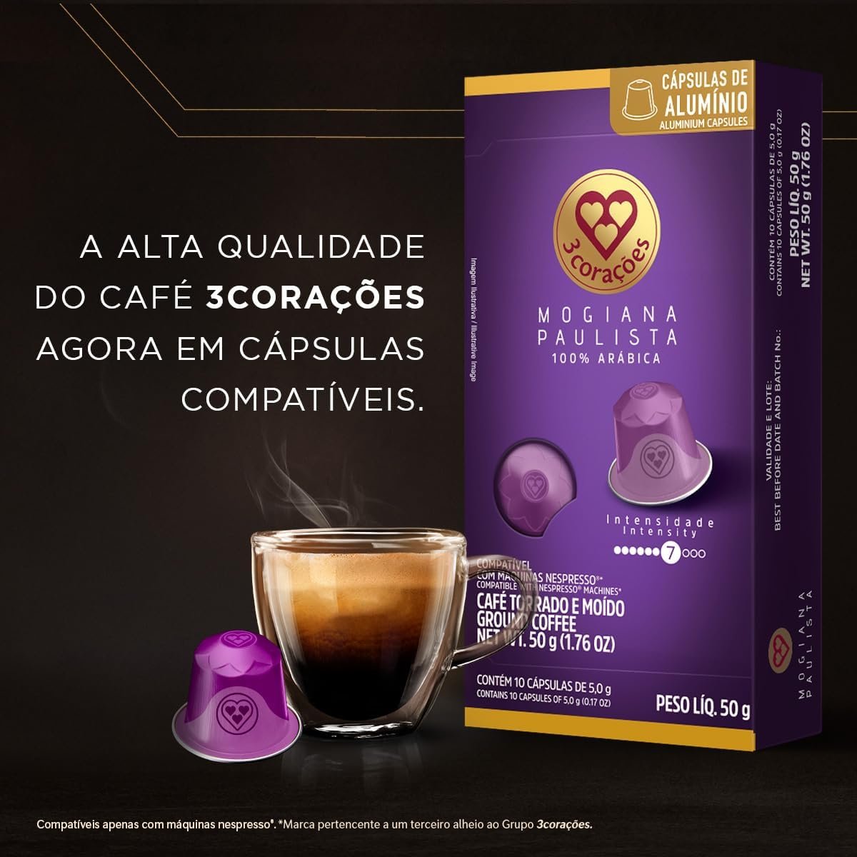 Experimente o delicioso Café Mogiana Paulista em cápsulas da 3 Corações, compatíveis com Nespresso. Desfrute de um café encorpado e aromático a qualquer momento do seu dia. Embalagem com 10 cápsulas para você saborear a qualidade e tradição de um dos melhores cafés do Brasil.