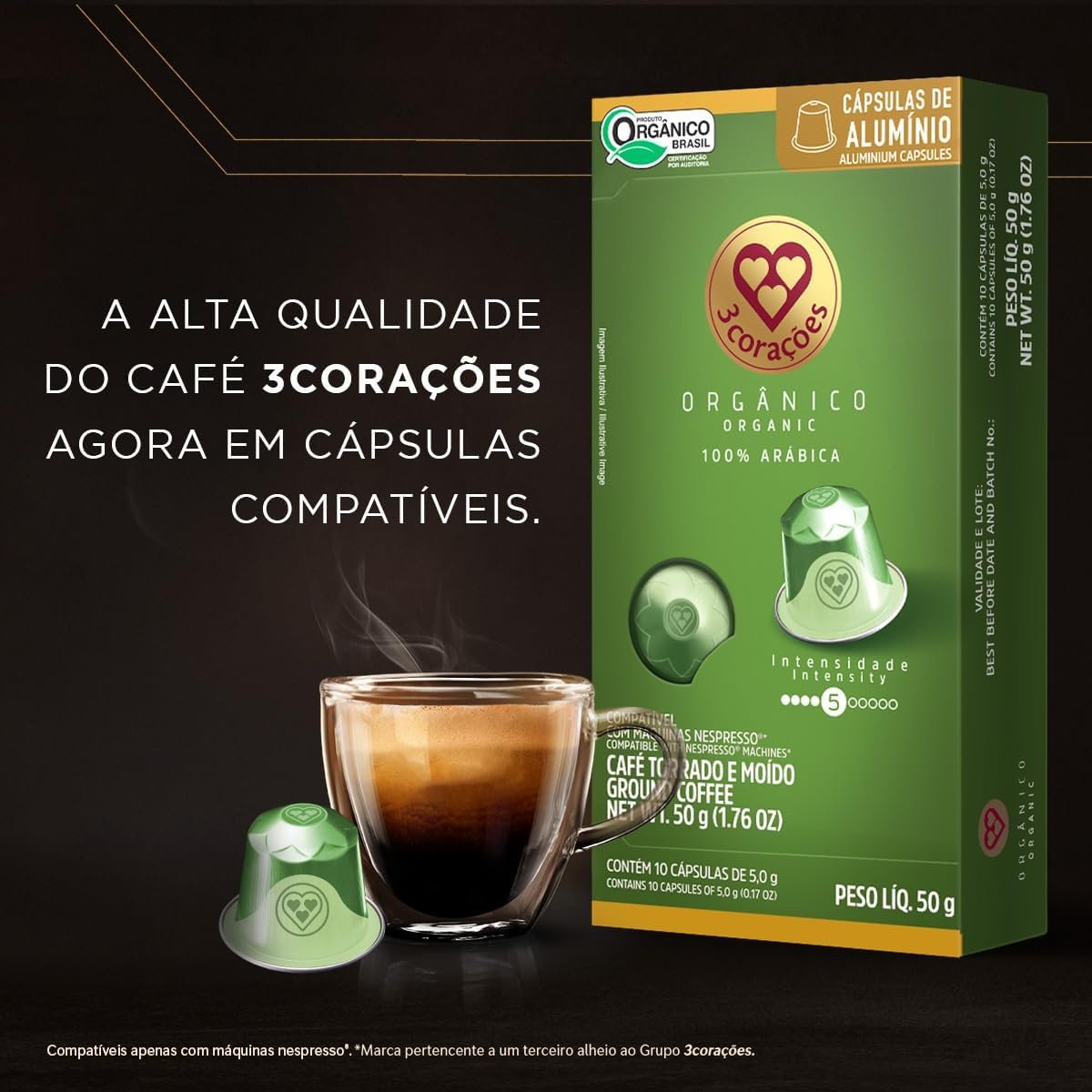 Desfrute de um café premium a qualquer momento com as Cápsulas de Café Orgânico da 3 Corações, compatíveis com máquinas Nespresso. Com 10 cápsulas por embalagem, você terá um café de alta qualidade, sustentável e delicioso sempre ao seu alcance. Aproveite a conveniência e o sabor único dessas cápsulas em cada xícara!