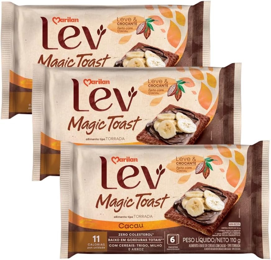 3 Torrada Doce Lev Magic Toast Cacau E Cereais Marilan 110g
