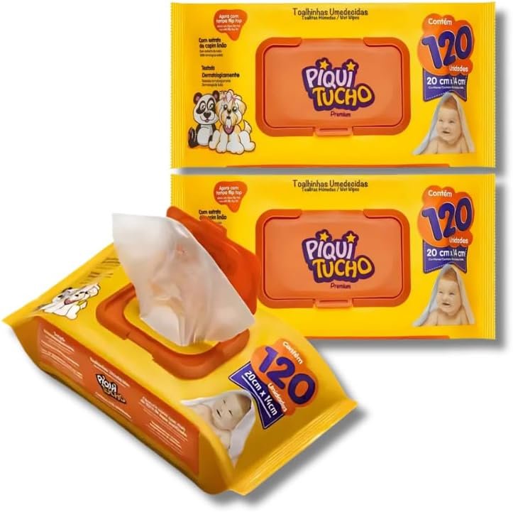 3x Toalhinhas Umed Piquitucho Premium, 360 Unidades3x Toalhinhas Umed Piquitucho Premium, 360 Unidades
