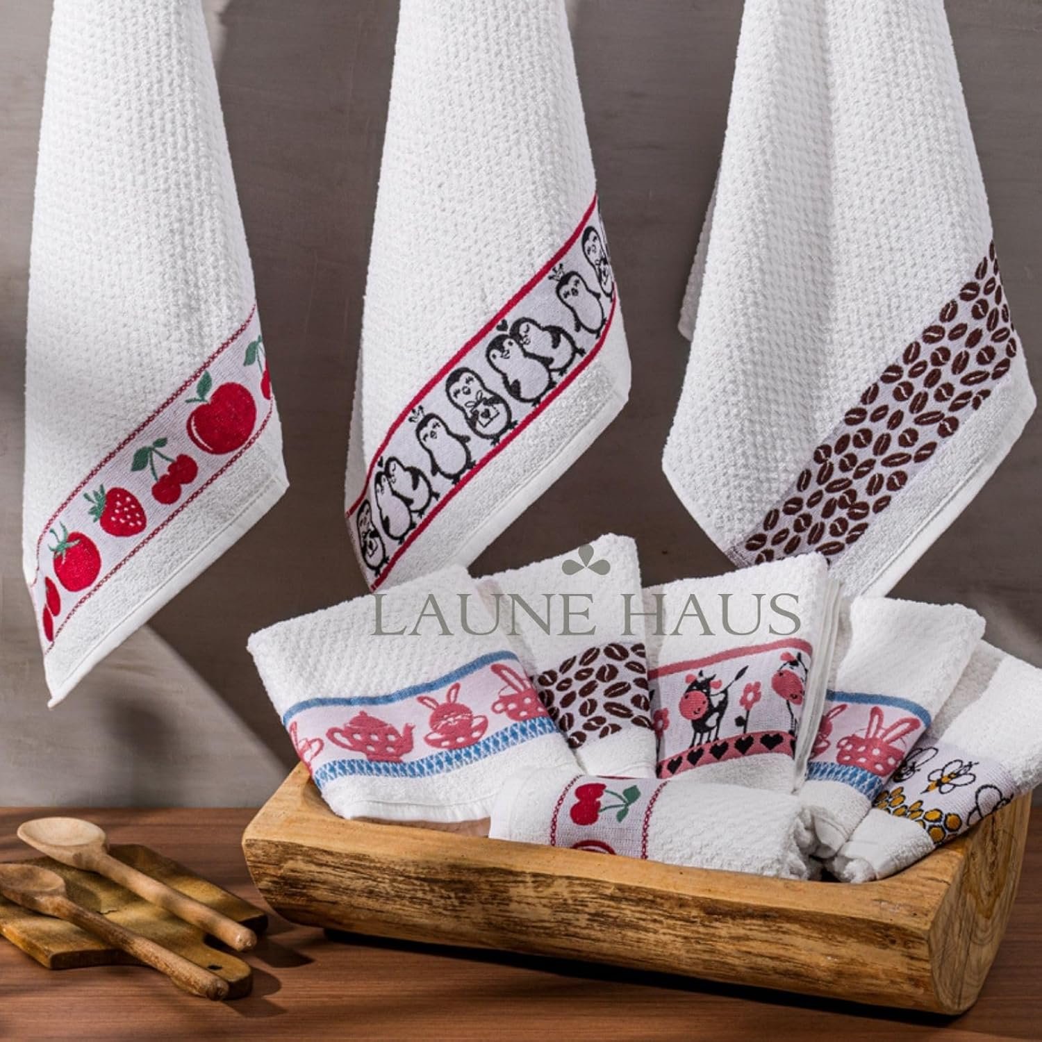 5 Toalhas de Louça Copa LAUNE HAUS Guardanapos Atoalhado Gourmet Grosso 500g/m² Alta Capacidade de Absorção e Usa Para Decorar