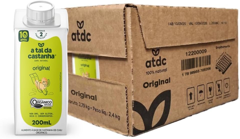 A Tal Da Castanha Bebida Vegetal Castanha de Caju Original, 200mL, 12 unidades