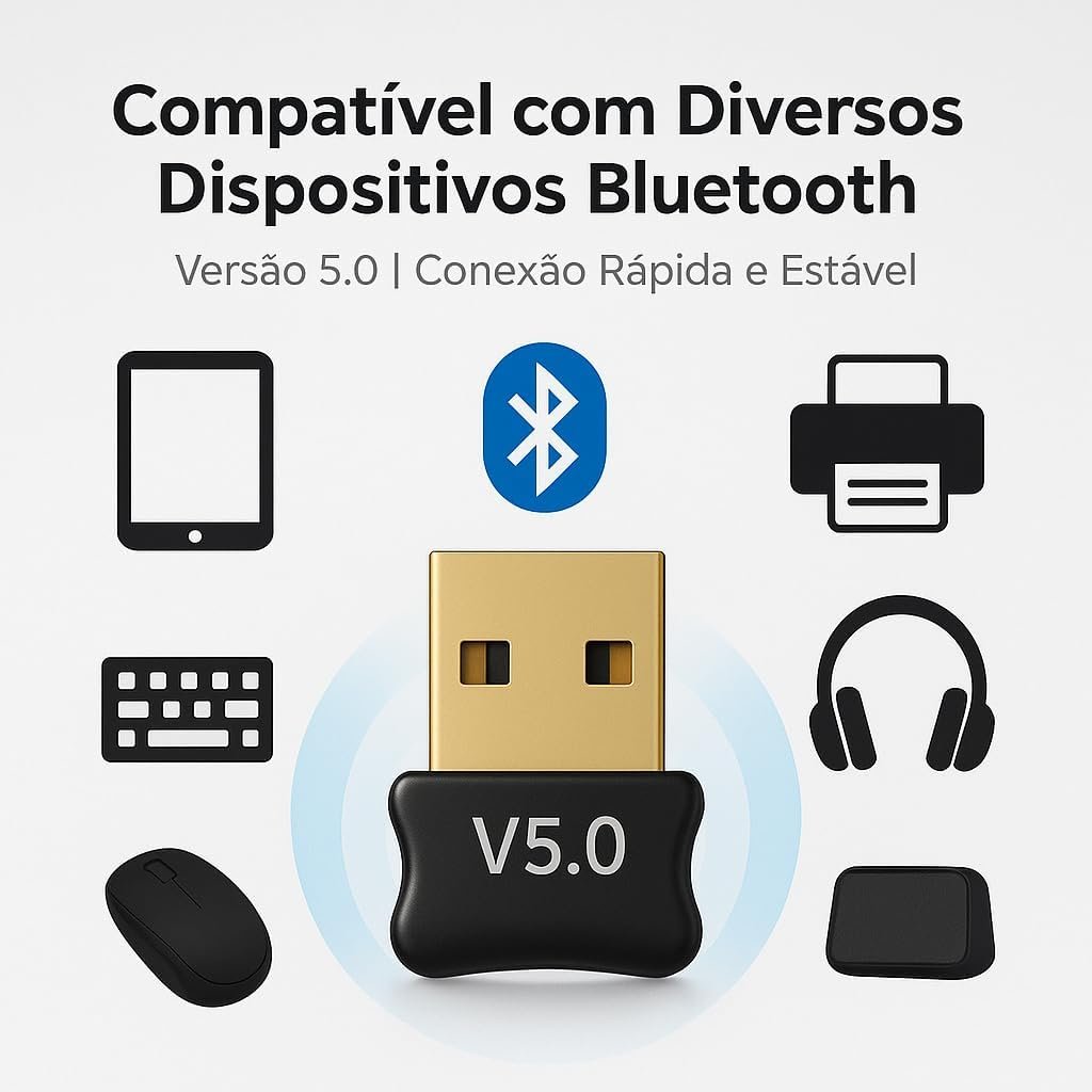 Adaptador Bluetooth 5.0 USB Receptor Dongle Para PC e Notebook Compatível Com Fone De Ouvido Mouse Teclado Windows Linux