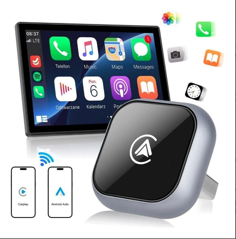 Adaptador CarPlay e Android Auto Sem Fio 2 em 1 – Converte Sistema Com Fio em Wireless, Plug & Play, Conexão Rápida para Carros Compatíveis