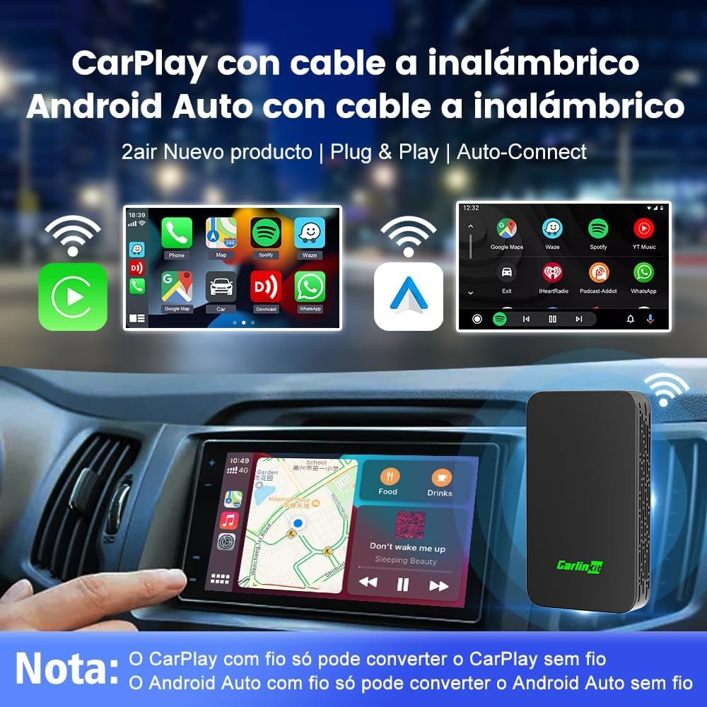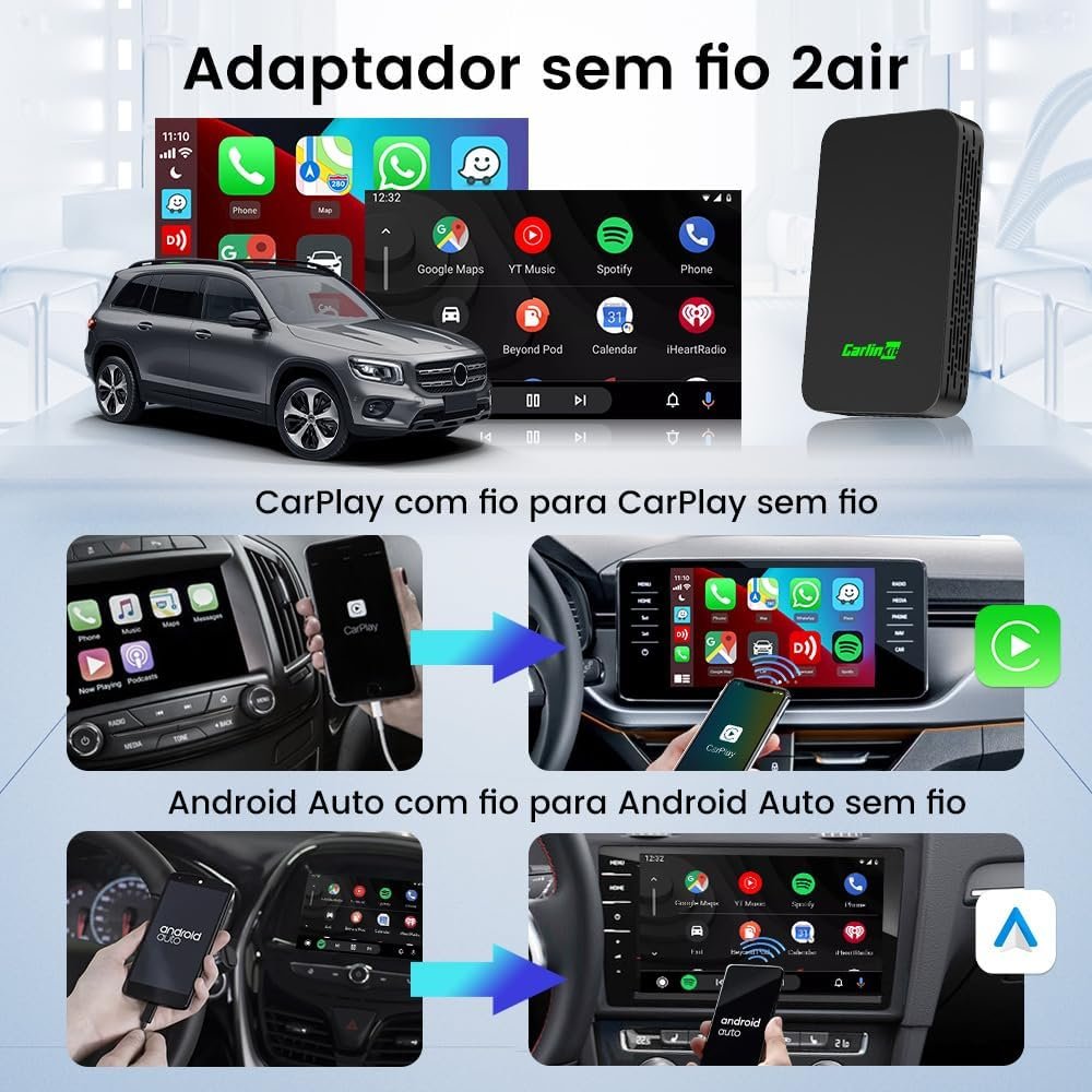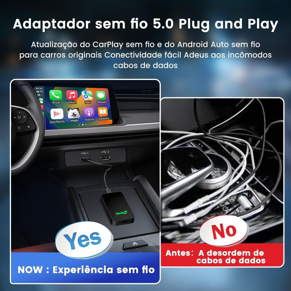 Adaptador Wireless CarPlay & Android Auto CarlinKit 5.0 de 2025 para Carros com CarPlay com fio e Android Auto com Fio OEM (2016-2025), Suporte para Atualização Online, Conexão Rápida