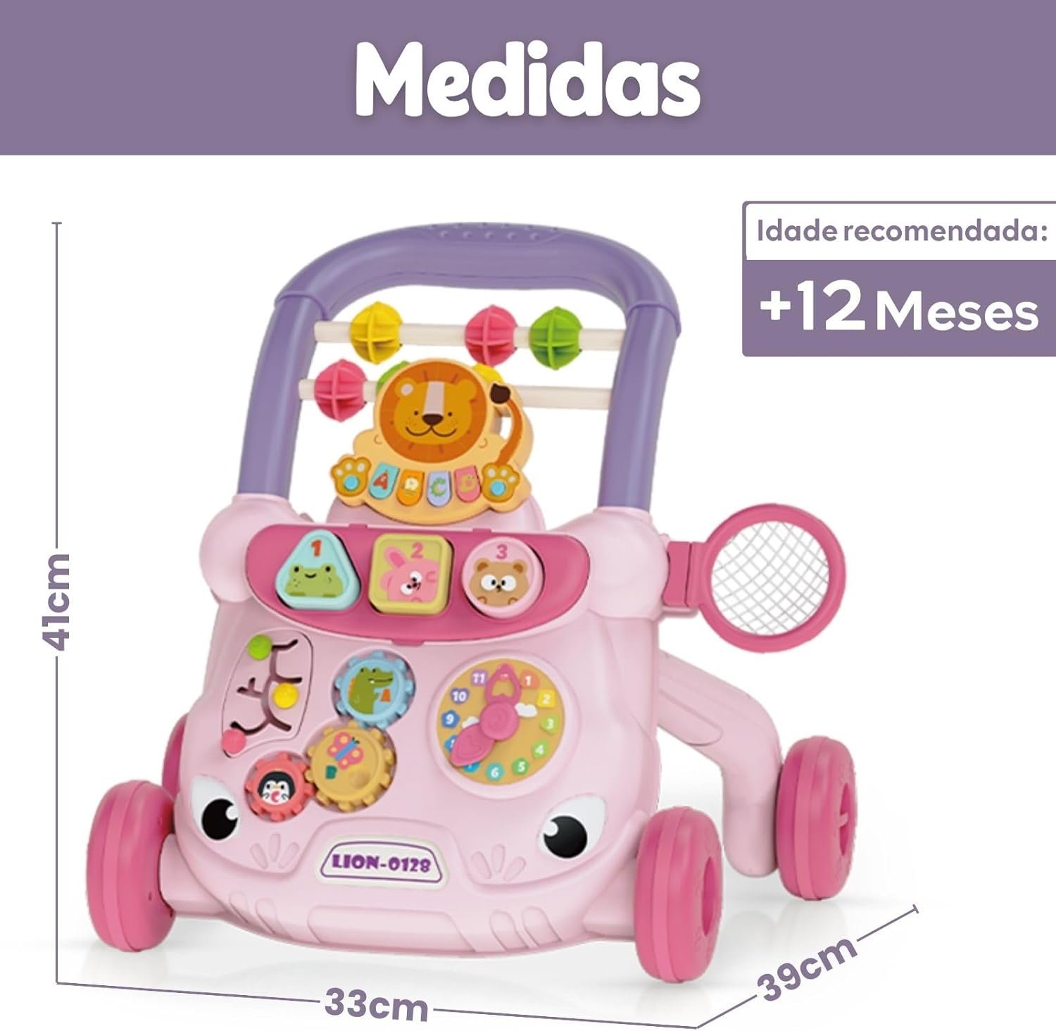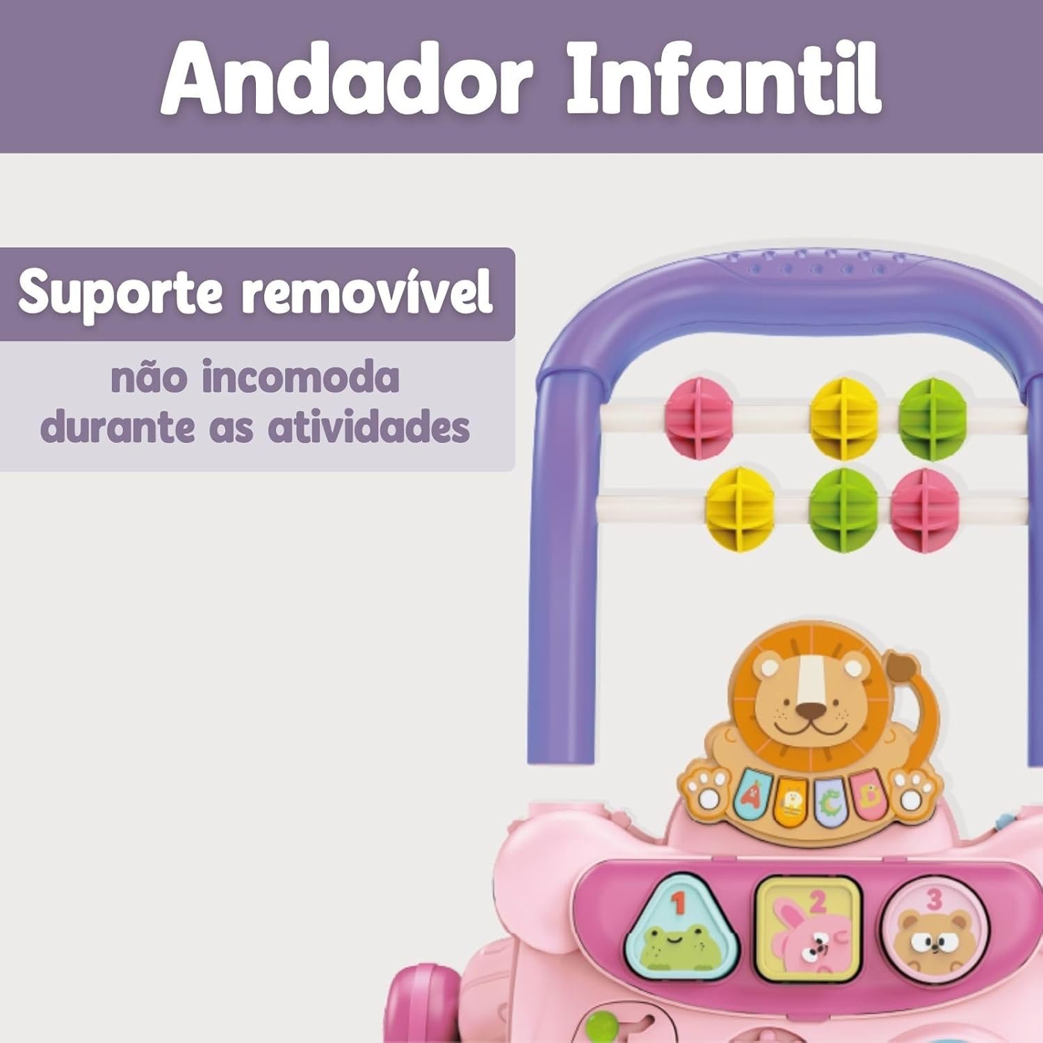 Andador Infantil Didático Musical Educativo Interativo com Reservatório de Água (Rosa)