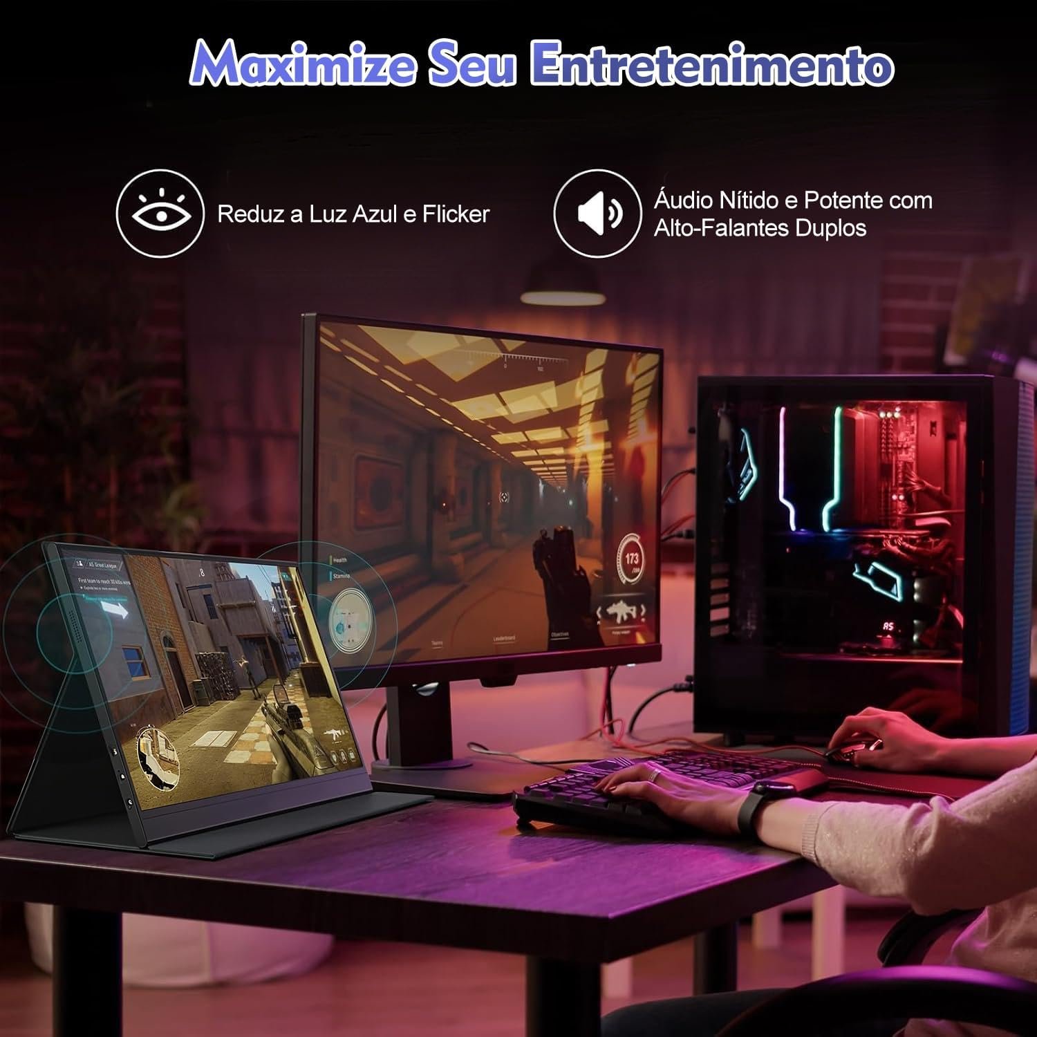 ANTUVI Tocável Portátil Monitor 15.6”+ Case, 1080P, MINI Segunda de Notebook Extensor De Tela, Ultra-Slim e Portátil, com Alto-falante de pé, Adequado para Viagens, Casa, Trabalho/JogosANTUVI Tocável Portátil Monitor 15.6”+ Case, 1080P, MINI Segunda de Notebook Extensor De Tela, Ultra-Slim e Portátil, com Alto-falante de pé, Adequado para Viagens, Casa, Trabalho/Jogos