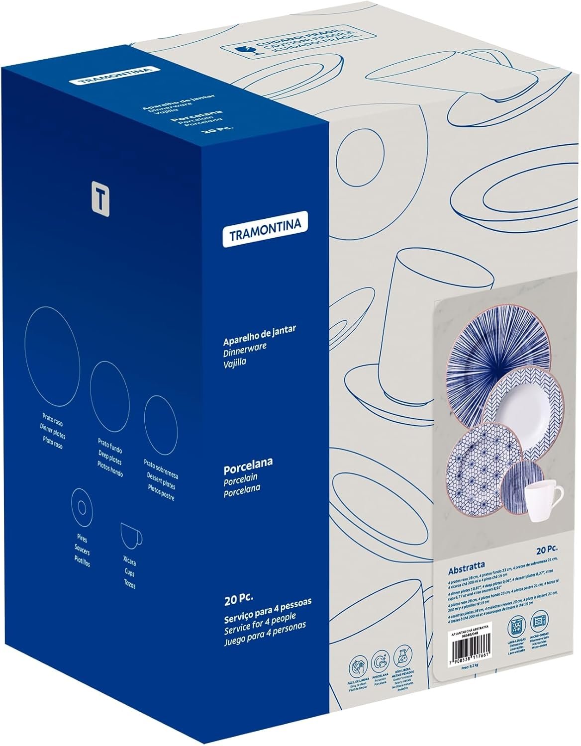 Aparelho de Jantar Tramontina Abstratta em Porcelana Decorada 20 Peças