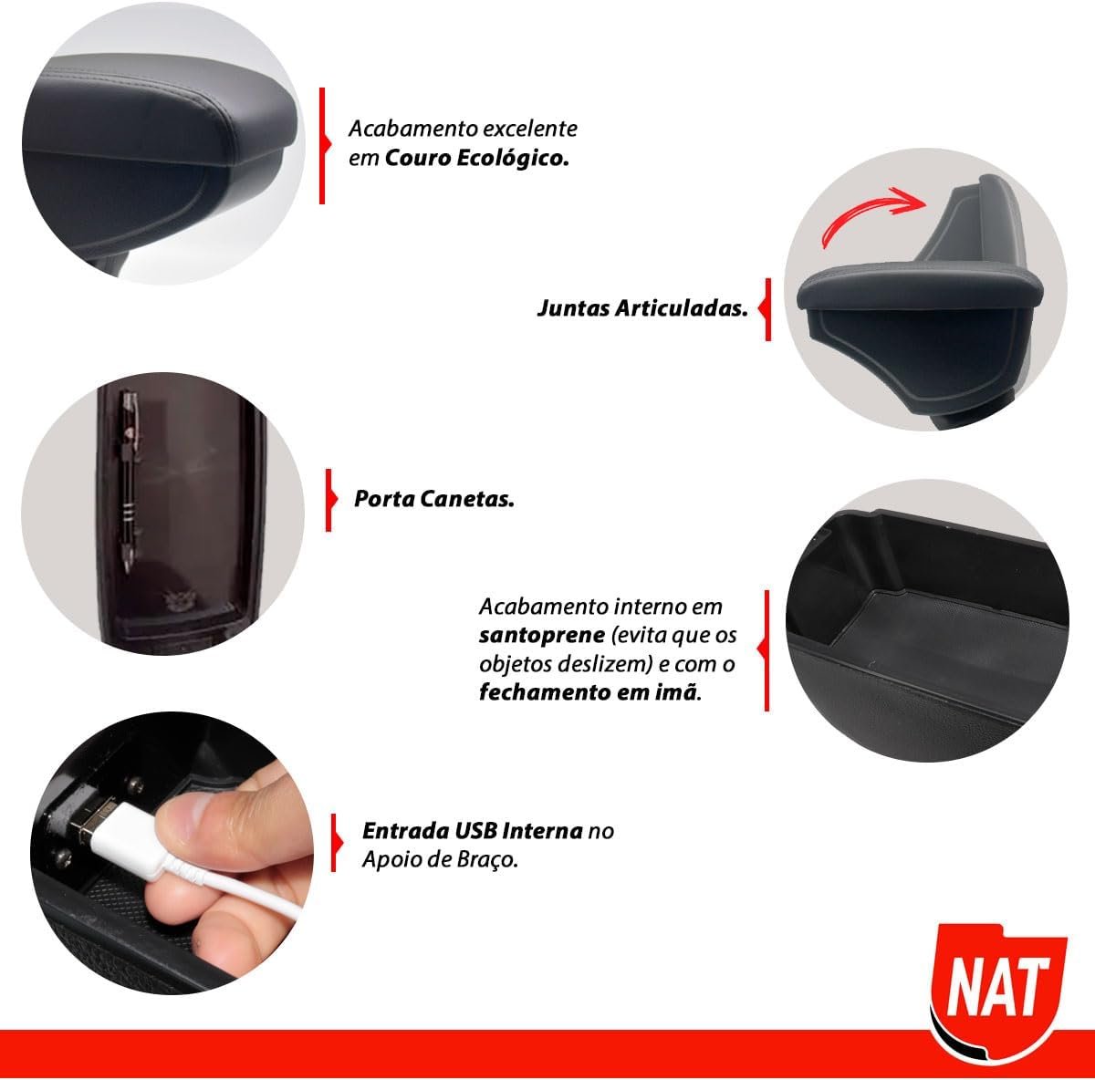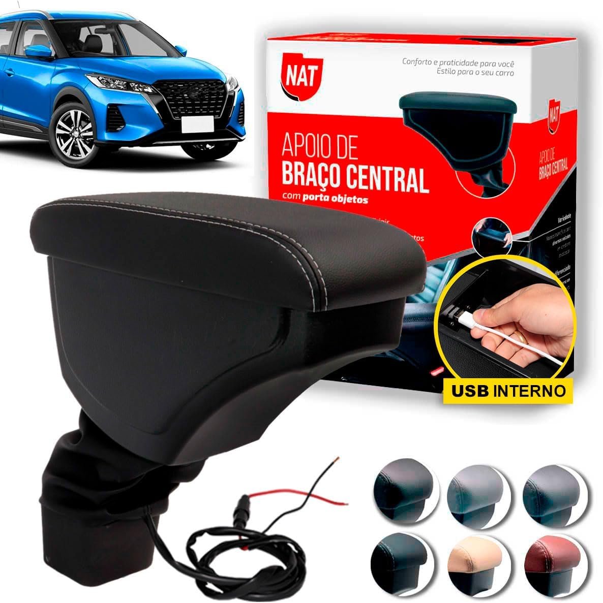 Apoio de Braço Encosto Nissan Kicks Ano 2016 Até 2021 C/Usb (Preto C/Linha Branca)