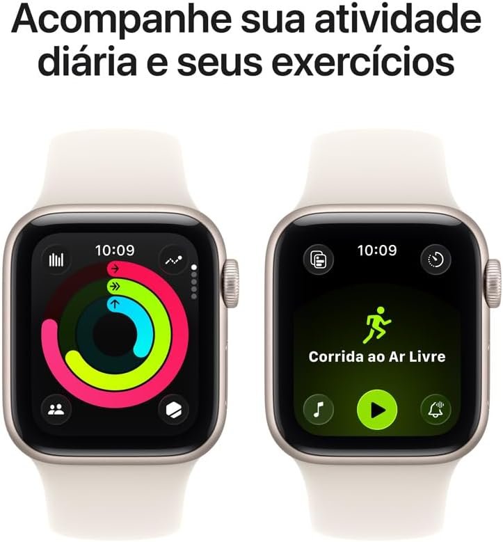 Apple Watch SE 3 GPS, Caixa em alumínio luz das estrelas de 40 mm com Bracelete desportiva luz das estrelas – P/M