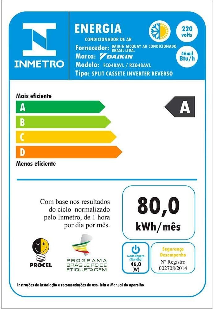Título do Produto: Ar Condicionado Split Cassete Inverter Daikin Skyair Quente e Frio 46000 Btus Fcq48avl 220v 220v