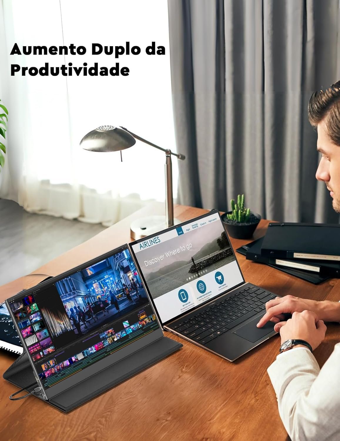 Armazém Brasil, Monitor Portatil 15,6”, FHD 1080P Monitor Portátil Conectado Com USB C Dupla/HDMI, IPS Extensor De Tela para Notebook com VESA e Funda Inteligente magnético, Plug and Play