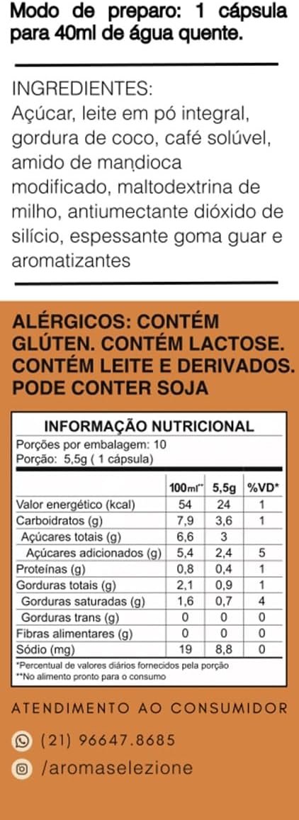 Aroma Selezione Cápsulas de Cappuccino Caramelo, Compatível com Nespresso, Contém 10 CápsulasAroma Selezione Cápsulas de Cappuccino Caramelo, Compatível com Nespresso, Contém 10 Cápsulas