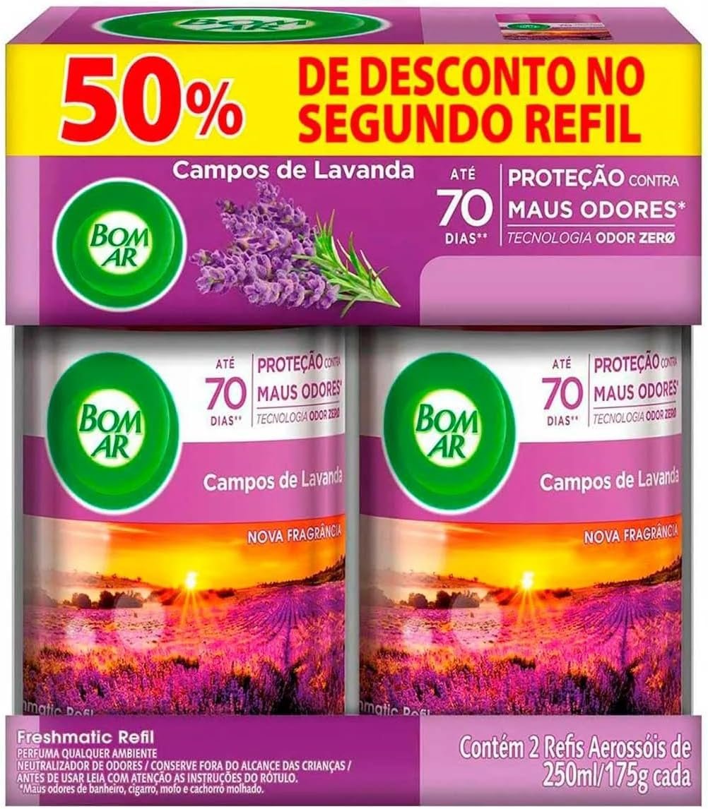 Transforme o seu ambiente em um oásis de tranquilidade e frescor com o Aromatizador de Ambiente Bom Ar Automático Aerossol Freshmatic. Compre 2 unidades e garanta a essência revigorante de Campos de Lavanda por muito mais tempo. Aproveite a praticidade e eficiência deste refil para manter sua casa perfumada e aconchegante. Renove suas energias diariamente com a suavidade e sofisticação que você merece!
