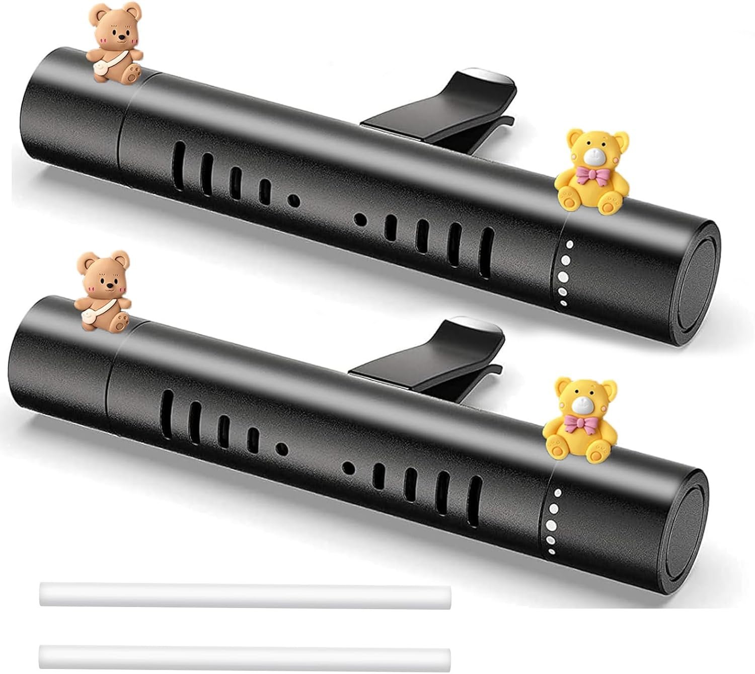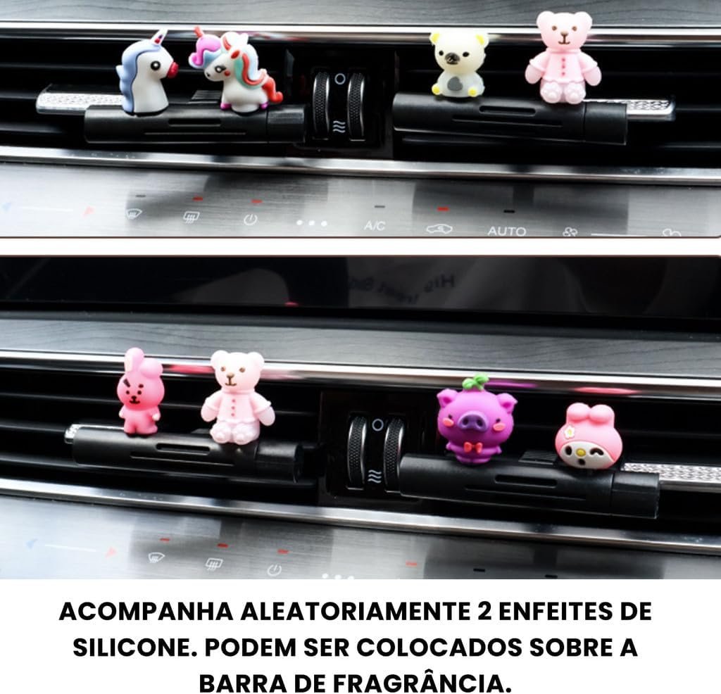 Aromatizador de Carro Unissex com Clipes para Ventilação – Perfume Automotivo Premium com Fragrâncias Naturais e 2 Bonequinhos de Silicone – Difusor de Ar e Aromaterapia (2 unidades)