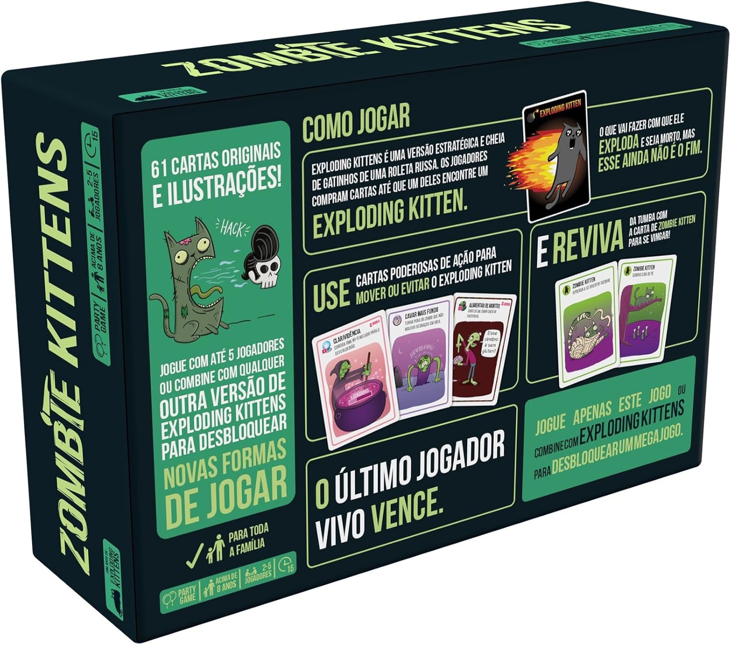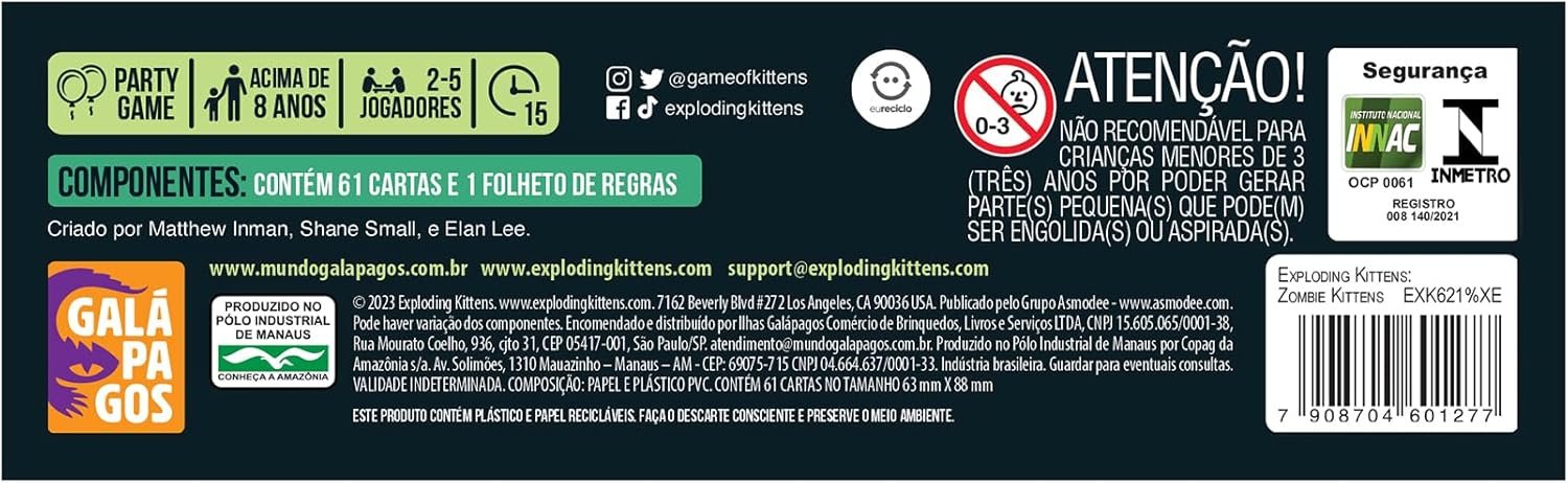 Asmodee, Exploding Kittens: Zombie Kittens, Jogo de Cartas, Para Galera, Idade +8,Partidas de até 15 min.