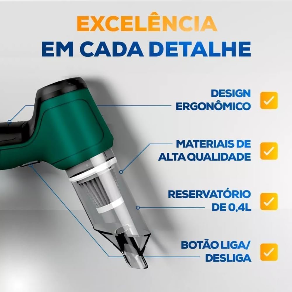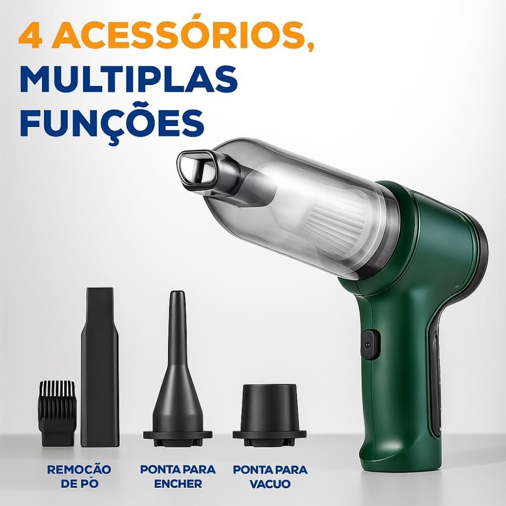 Aspirador de Pó Sem Fio Portátil 4 em 1 – Multifuncional, Leve, Potente e Recarregável para Casa e Carro – PremiumAspirador de Pó Sem Fio Portátil 4 em 1 – Multifuncional, Leve, Potente e Recarregável para Casa e Carro – Premium