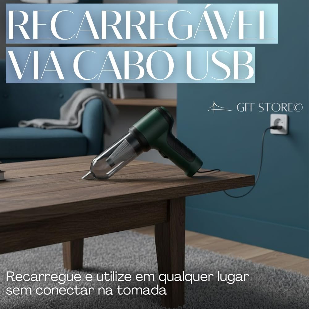 Seja o primeiro a avaliar “Aspirador de Pó Sem Fio Portátil 4 em 1 Multifuncional Recarregável via USB Remove Poeira Pelos Lacra Sacos Soprador de Sucção 19000Pa Motor 120W Infla Colchões Bateria Durável Limpeza de Carro”