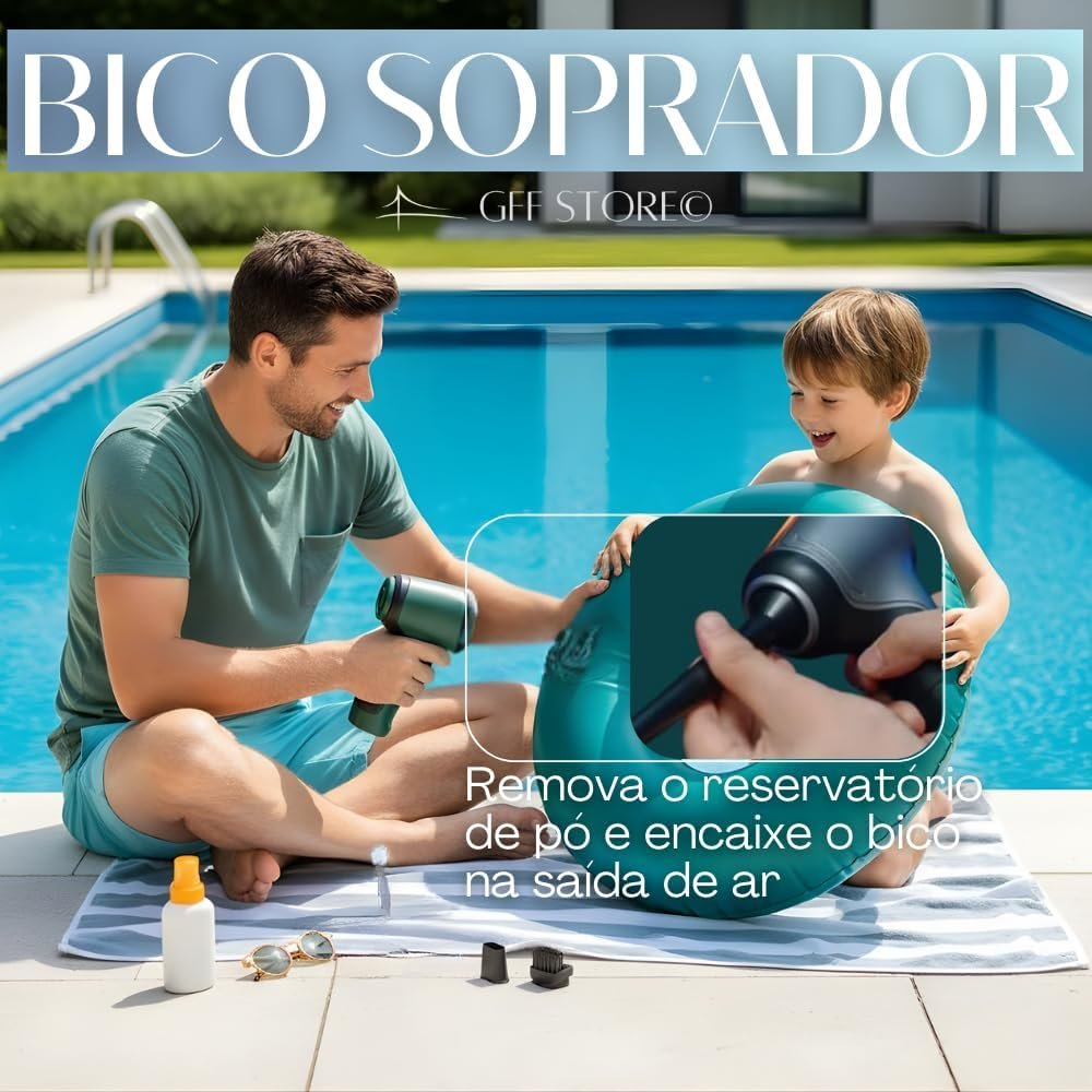 Aspirador de Pó Sem Fio Portátil 4 em 1 Multifuncional Recarregável via USB Remove Poeira Pelos Lacra Sacos Soprador de Sucção 19000Pa Motor 120W Infla Colchões Bateria Durável Limpeza de Carro