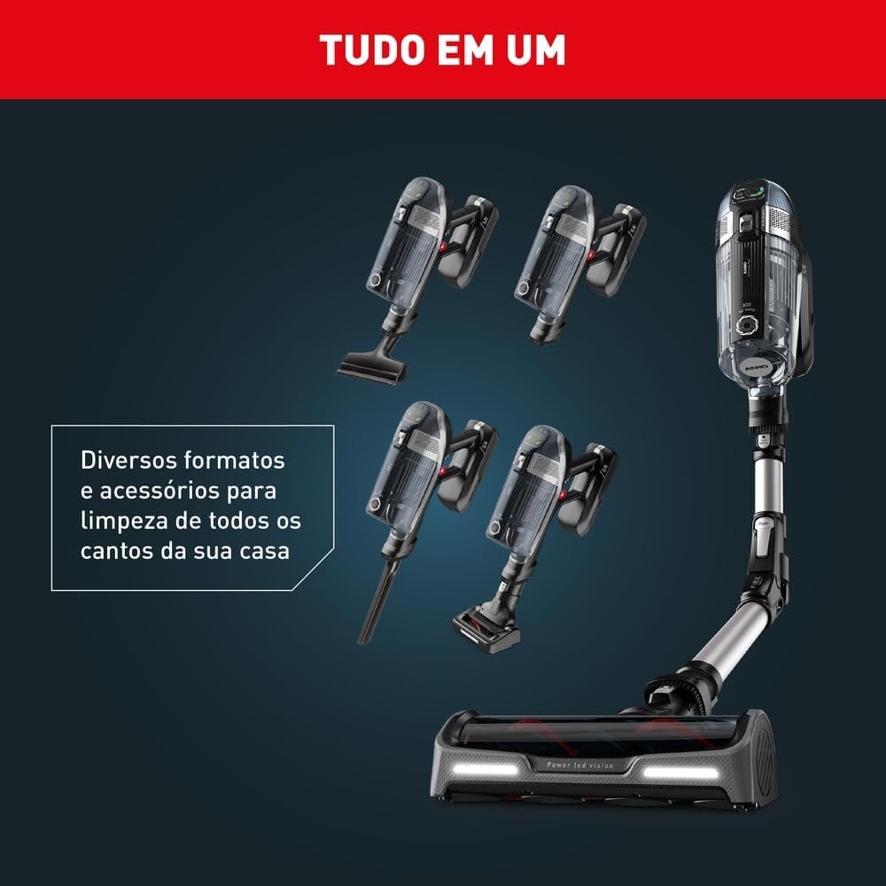 Aspirador de Pó Versatil Sem Fio Arno X-FORCE FLEX 14.60 com Tubo Flexível, até 1h10min de autonomia e 7 Acessórios, XF14 Bivolt