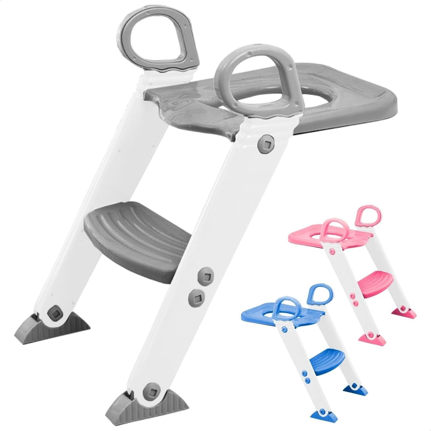 Assento Redutor Infantil Vaso Sanitário Privada Com Escada Trono Troninho (Cinza)