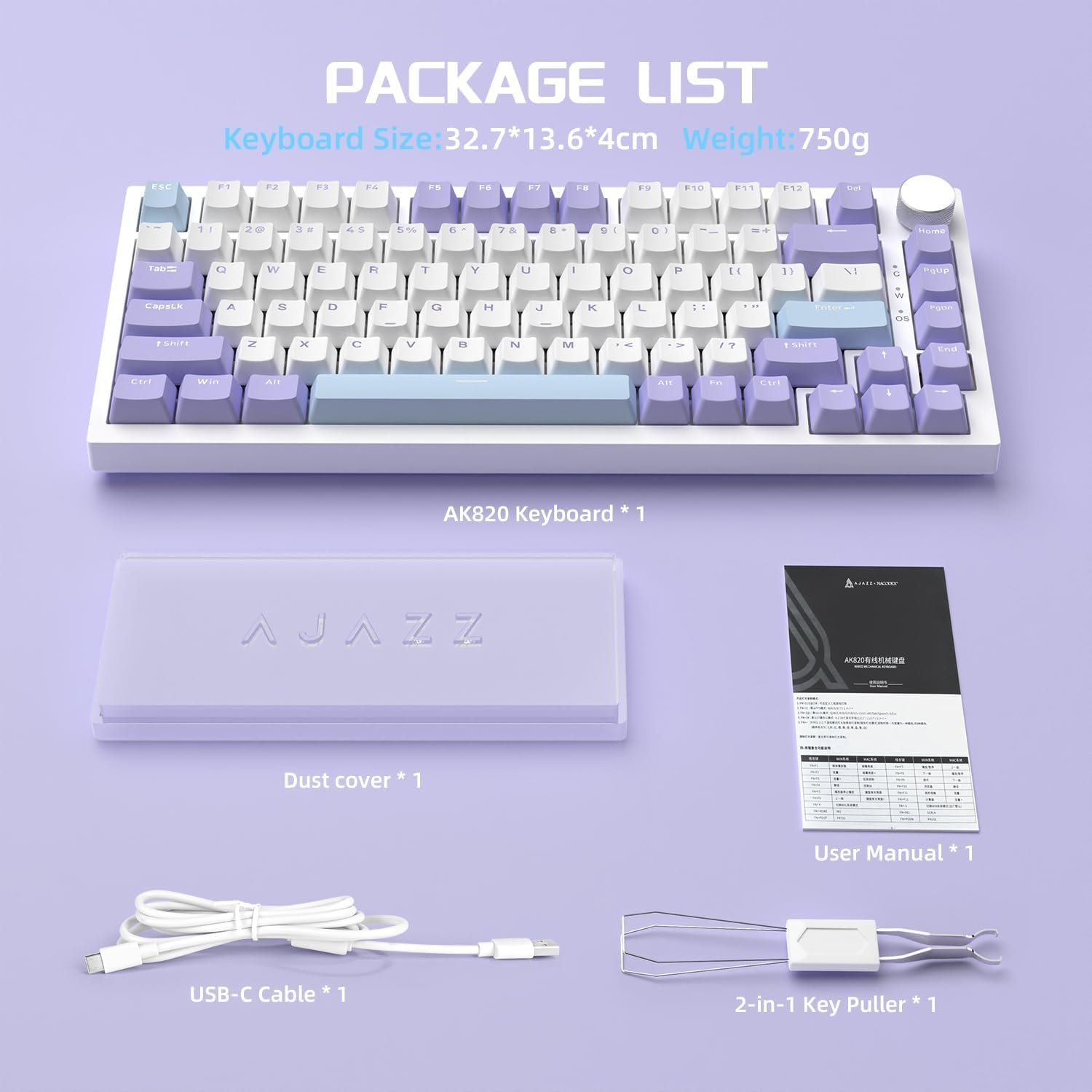 Attack Shark ajazz AK820 75% Teclado mecânico para jogos com fio com botão Hot Swappable RGB Junta Mount Linear Sea Salt Switch para PC/Win/Mac-Roxo/Azul