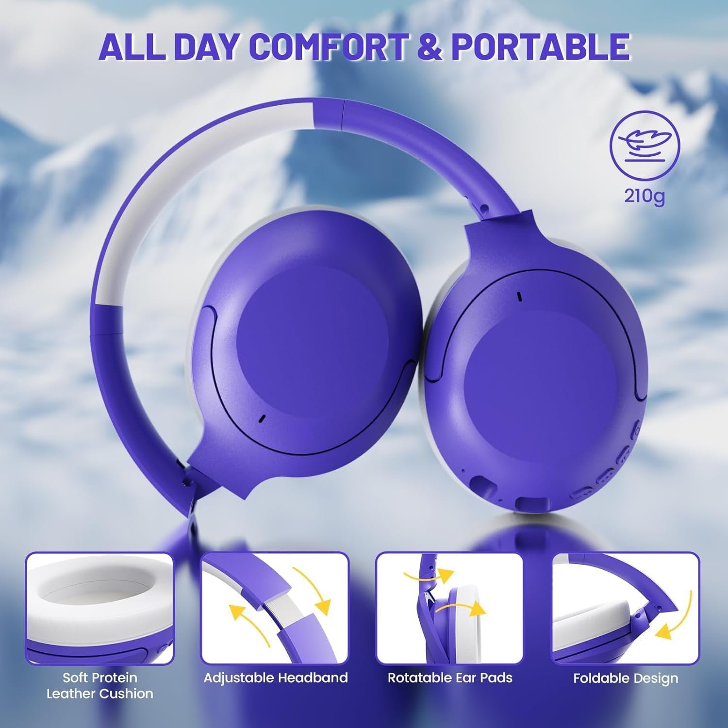 ATTACK SHARK G300 Fone de ouvido sem fio com cancelamento de ruído ativo,supra-auricular,ultraleve,dobrável,com fio/Bluetooth,20 horas de reprodução,microfone integrado,para viagens,escritório(Roxo)