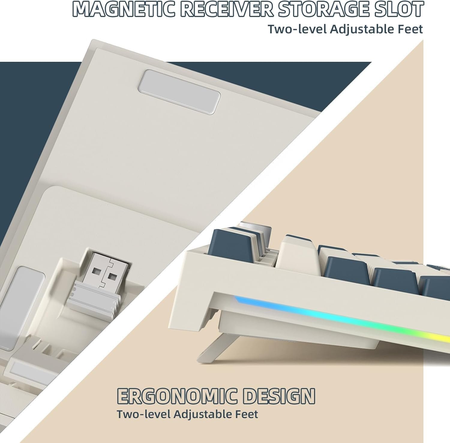 ATTACK SHARK K86 Teclado mecânico sem fio RGB para jogos, teclado com fio 2.4 GHz/BT5.0/USB-C, Layout 75% TKL com tela colorida TFT HD de 1.2” e botão CNC, interruptor linear TTC Hot-Swap(Azul)