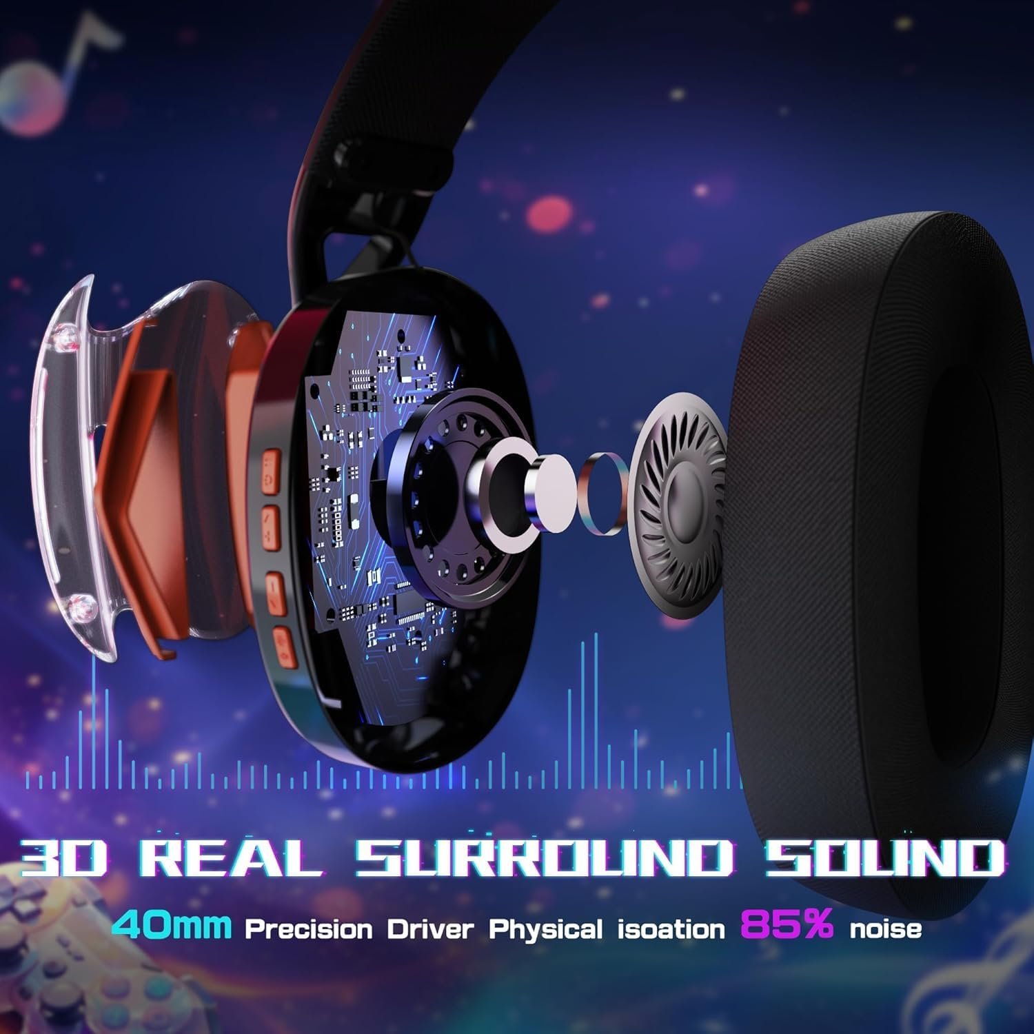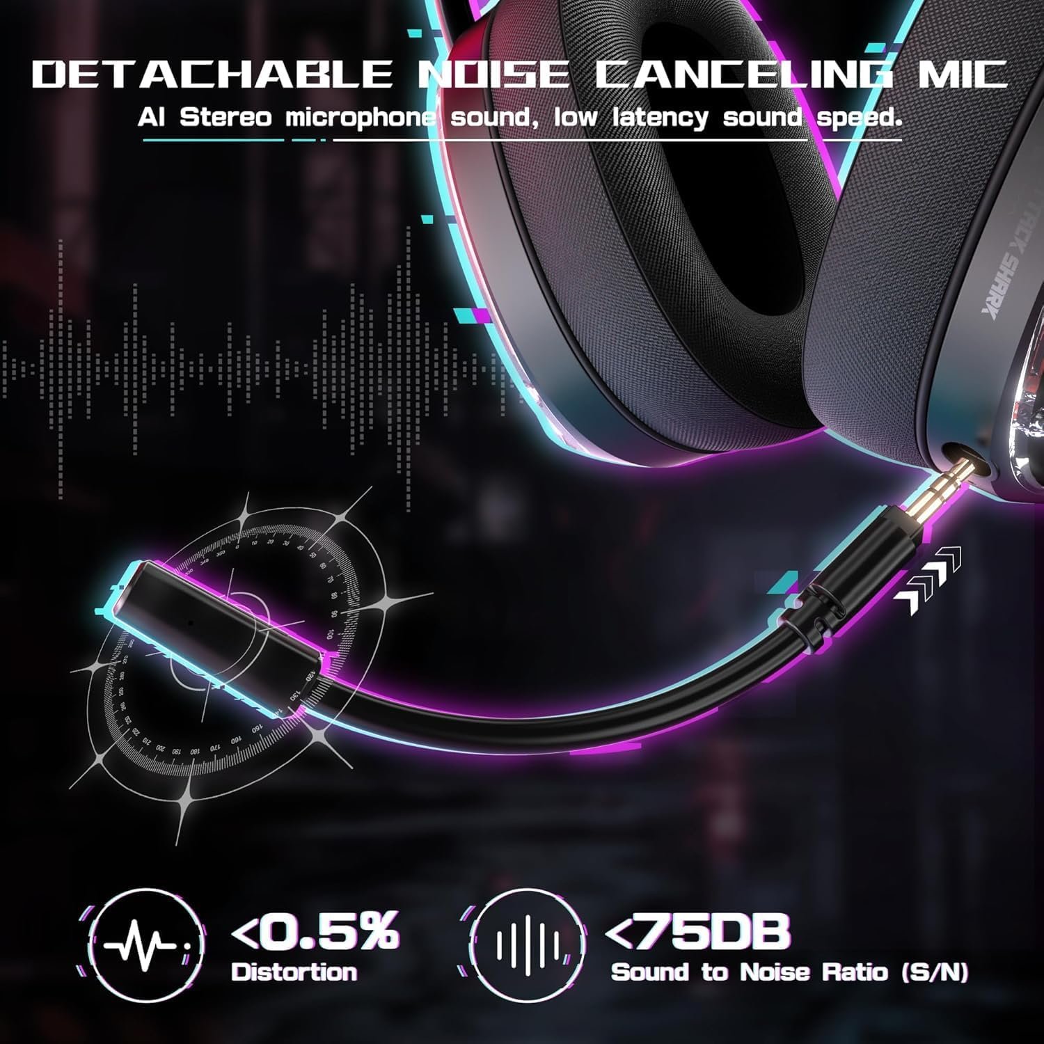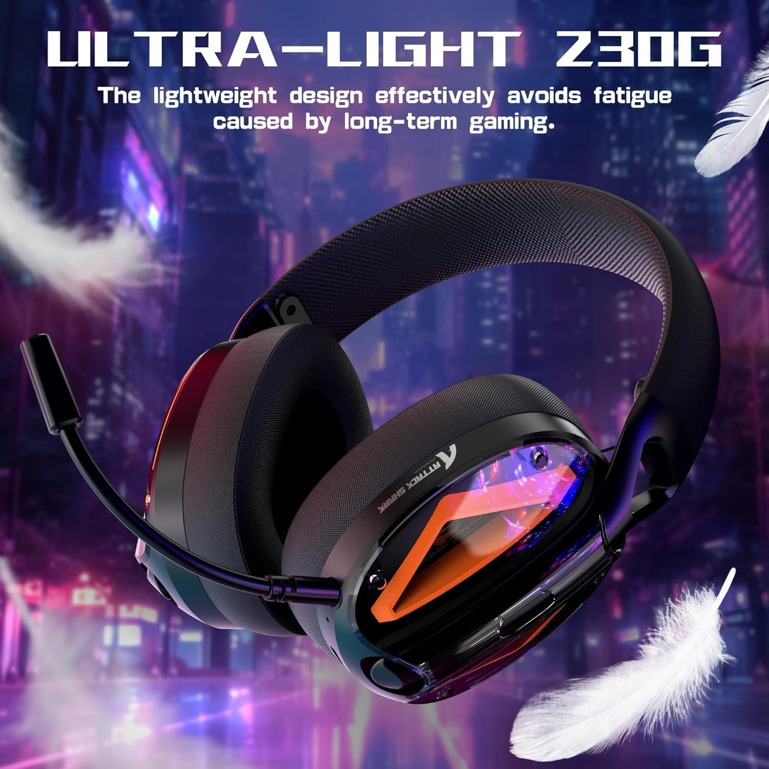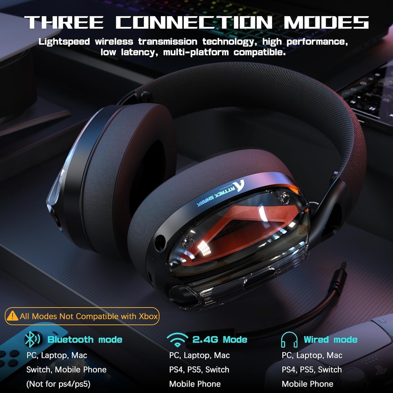 ATTACK SHARK L60 Fone de ouvido sem fio ultraleve para jogos,2.4GHz com receptor USB A e tipo C/BT/com fio,multiplataforma,bateria de mais de 40 horas,microfone removível para PC/PS5/PS4/Switch(Preto)