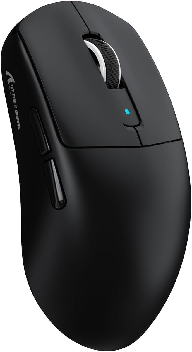 ATTACK SHARK R6 Mouse gamer sem fio de 8 kHz, SUPERLEVE 39 g,MCU Nordic 52840, sensor PixArt PAW3950MAX,BT/2.4 G/com fio, 42.000 DPI,microinterruptores ópticos (100 milhões de cliques),PC/Mac(Preto)