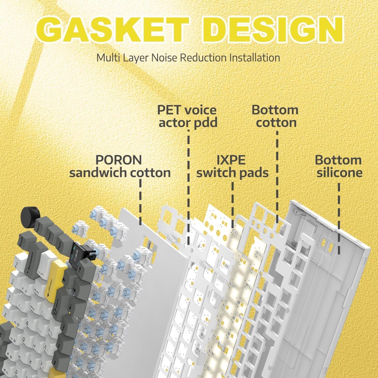 ATTACK SHARK x AJAZZ AK820PRO Teclado mecânico para jogos RGB 75% com tela TFT e botão,ANSI,2.4G/BT5.1/USB-C com fio,5 espumas de absorção de som,interruptor linear hot-swap para PC MAC(Cinza/Amarelo)
