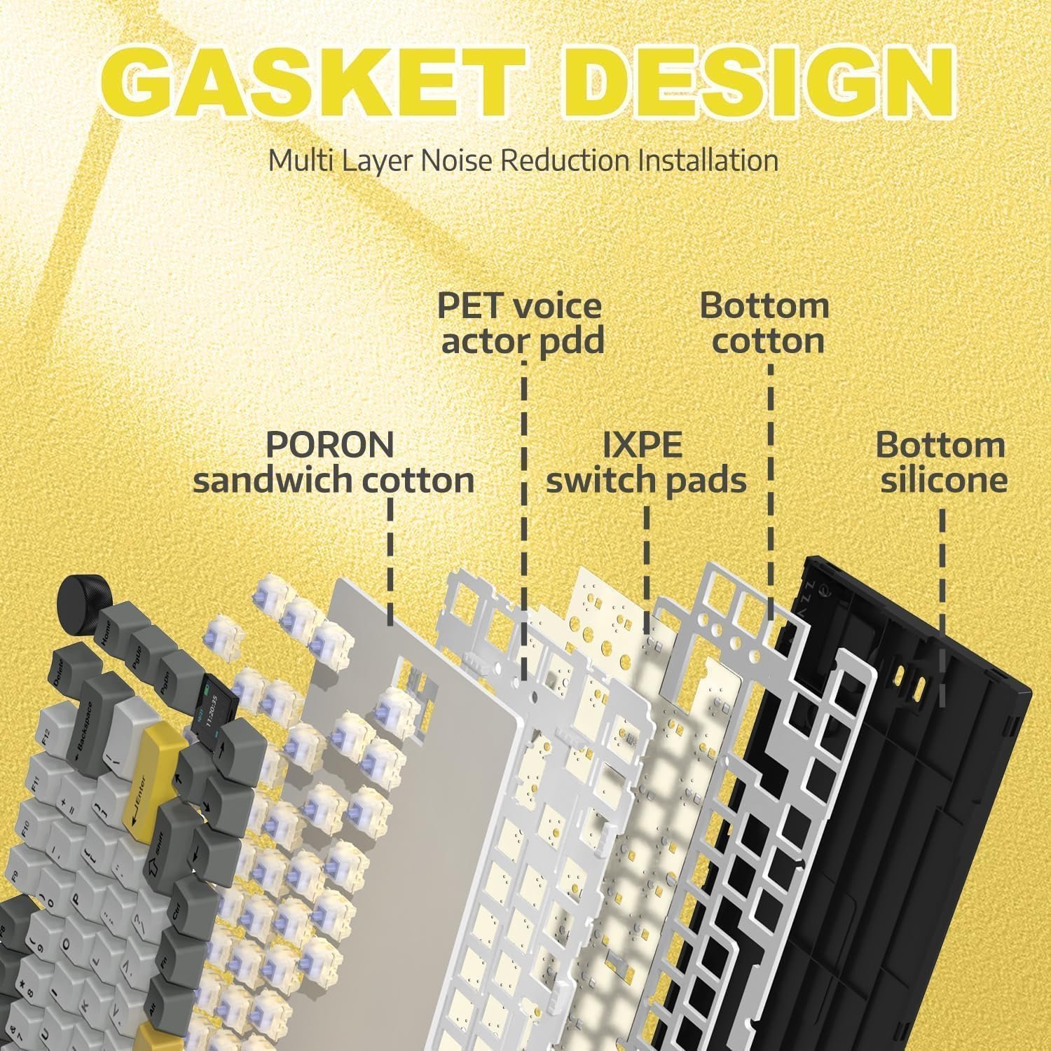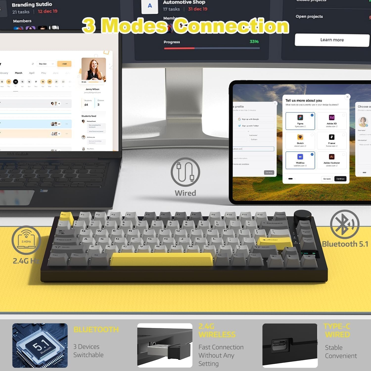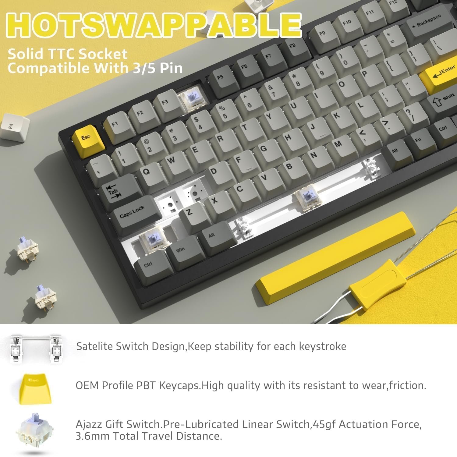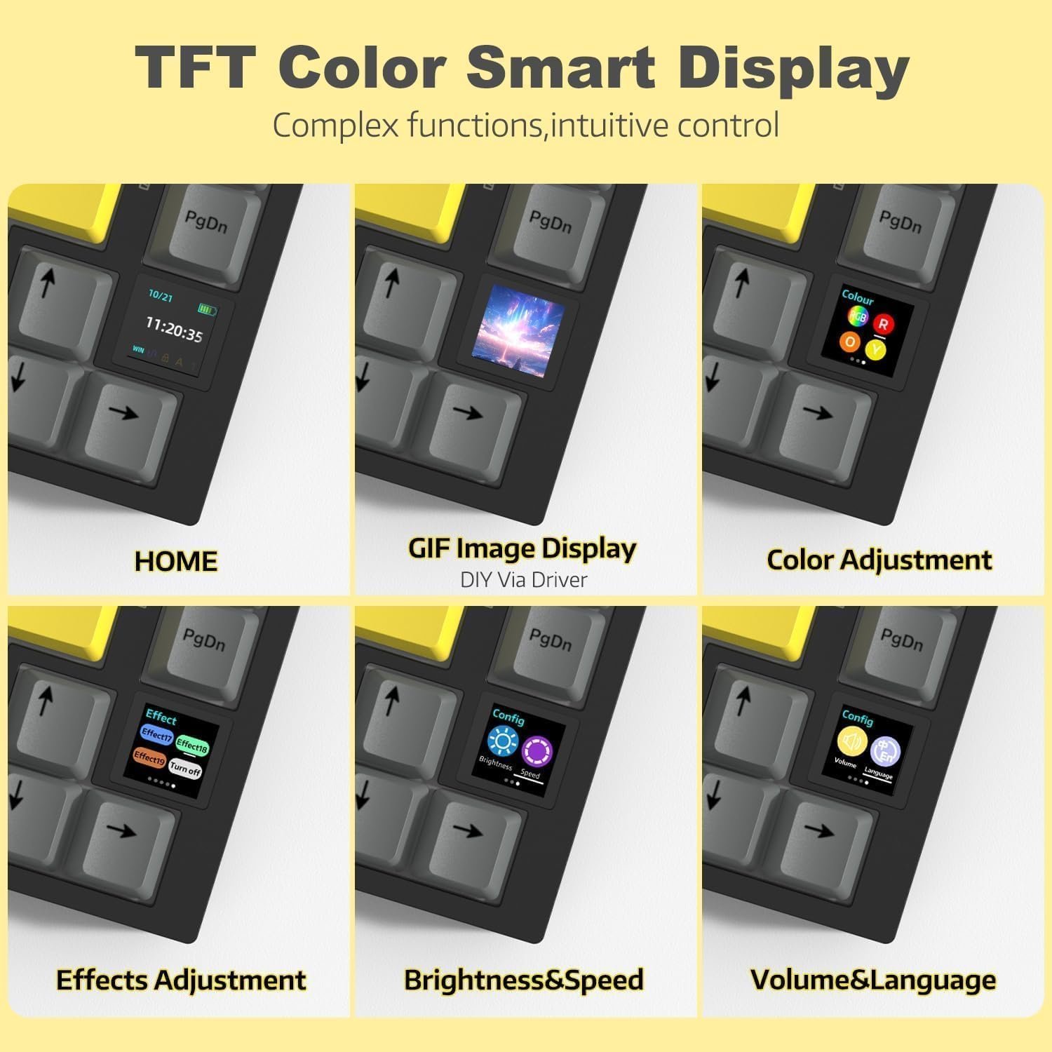 ATTACK SHARK x AJAZZ AK820PRO Teclado mecânico para jogos RGB 75% com tela TFT e botão,ANSI,2.4G/BT5.1/USB-C com fio,5 espumas de absorção de som,interruptor linear hot-swap para PC MAC(Cinza Amarelo)