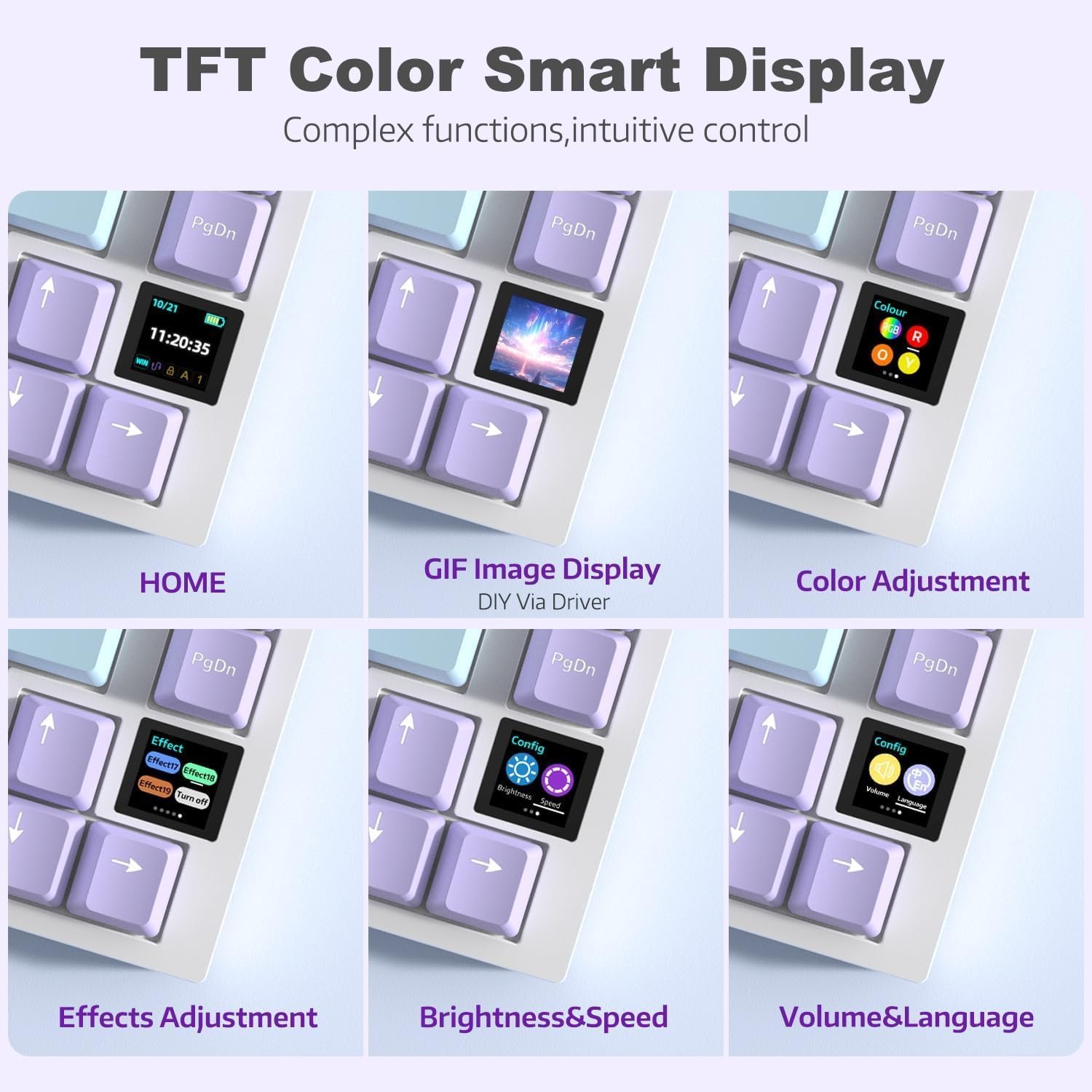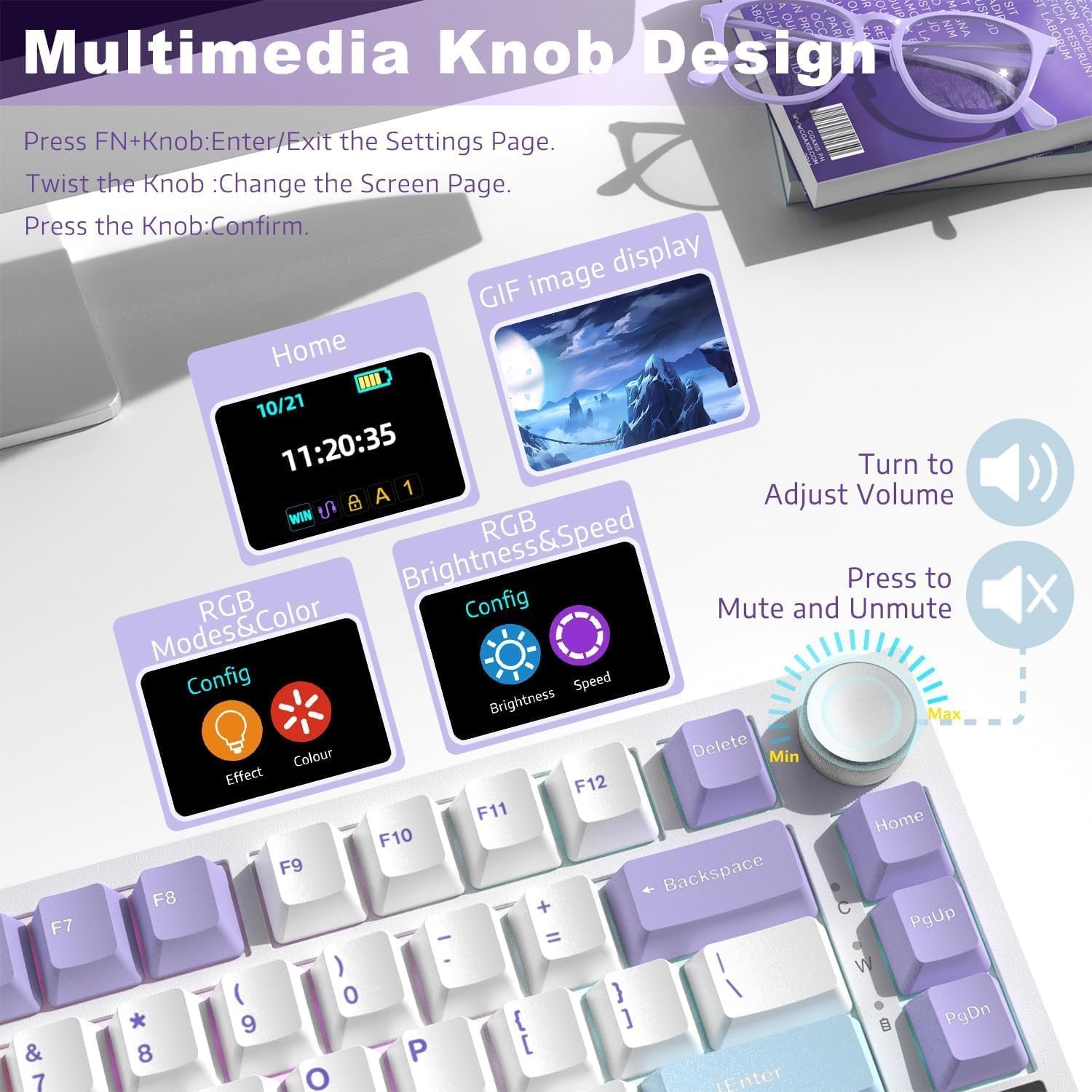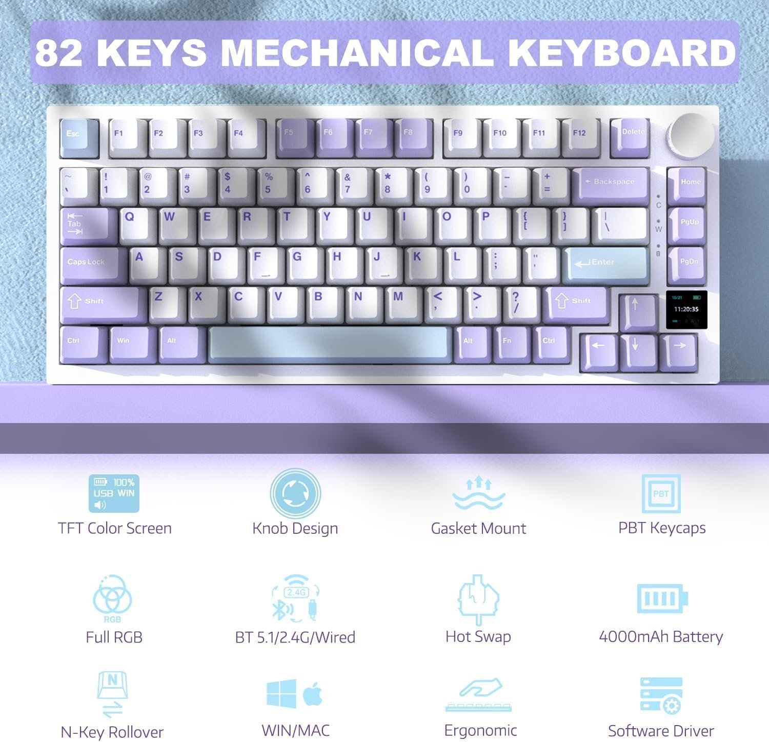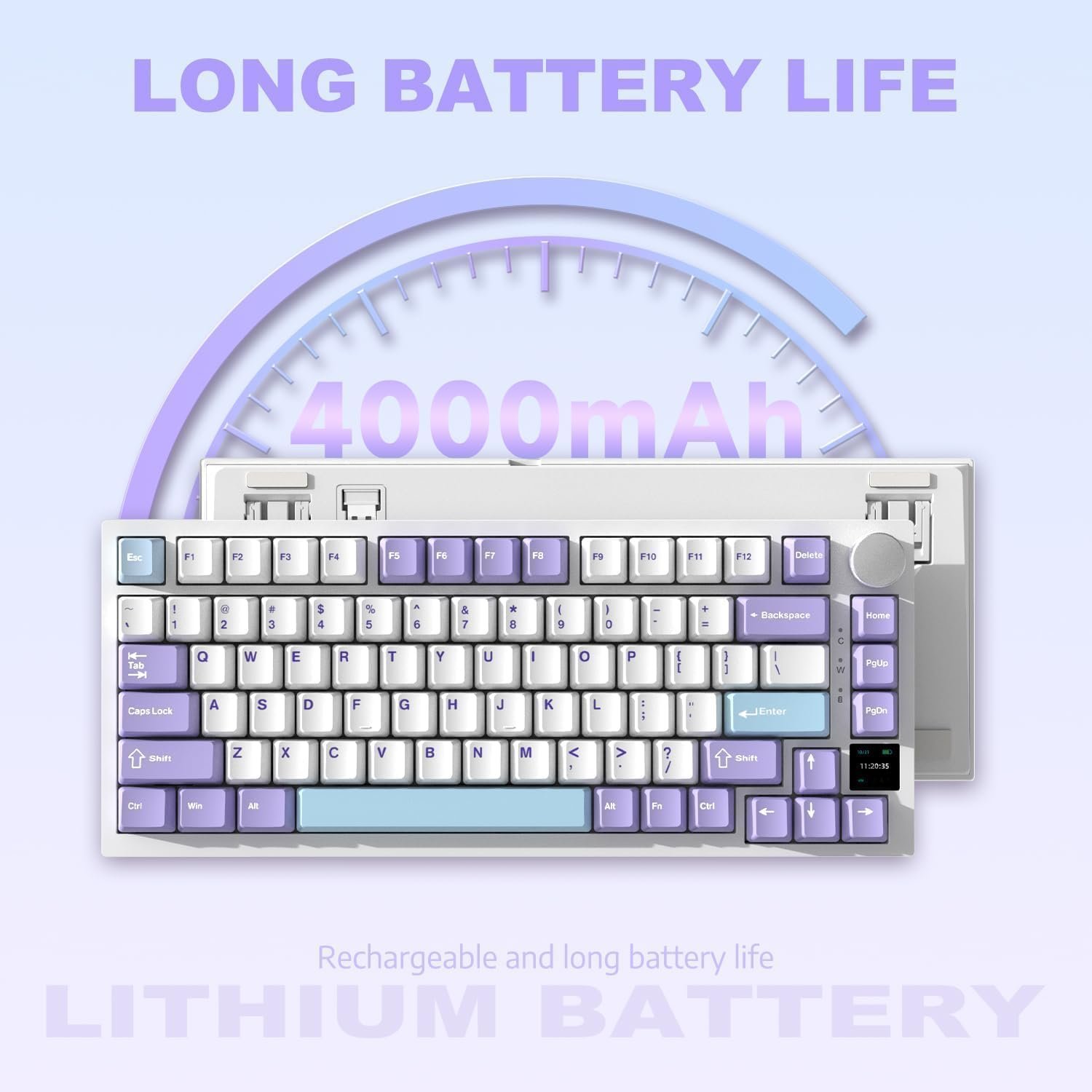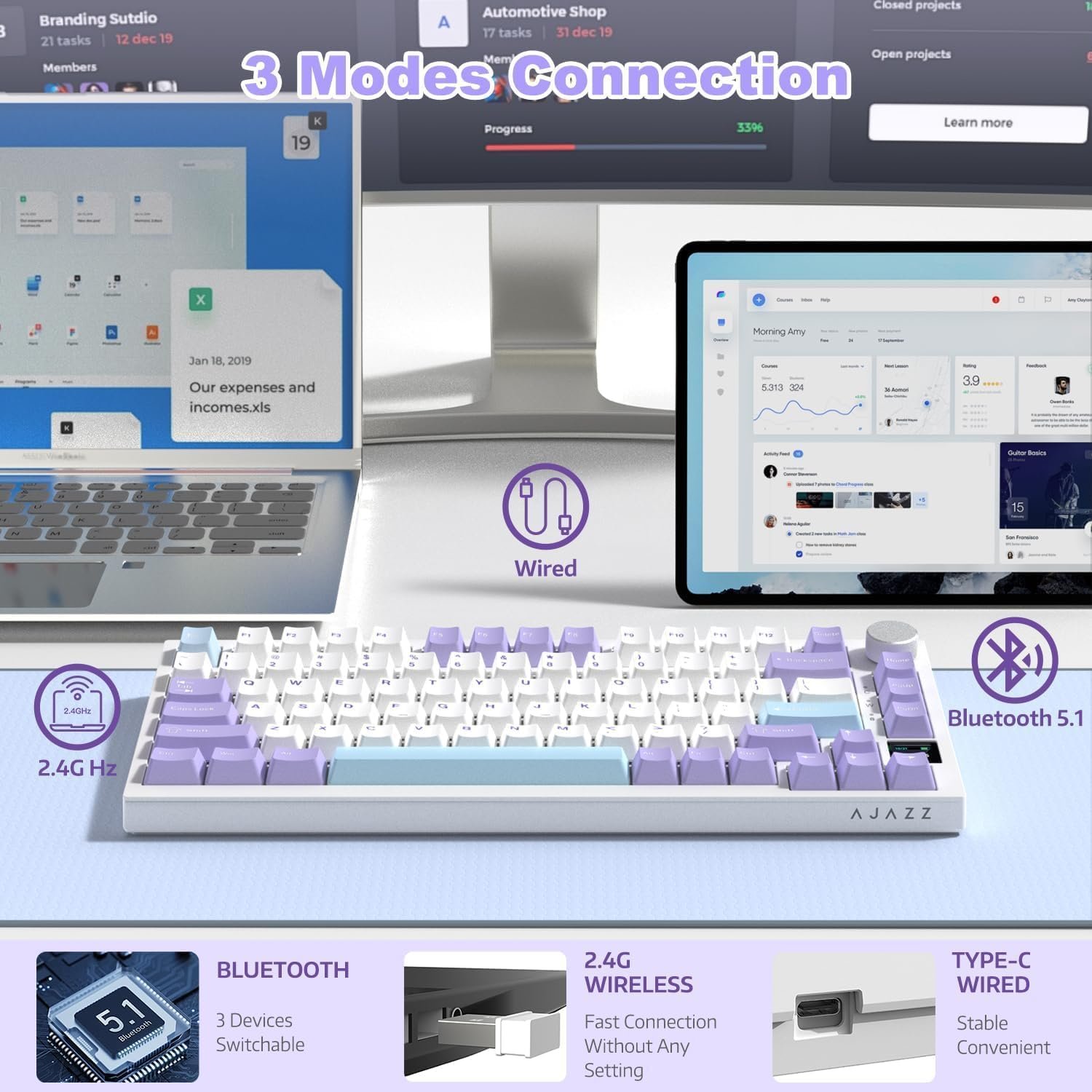 ATTACK SHARK x AJAZZ AK820PRO Teclado mecânico para jogos RGB 75% com tela TFT e botão,ANSI,2.4G/BT5.1/USB-C com fio,5 espumas de absorção de som,interruptor linear hot-swap para PC MAC(Roxo/Azul)