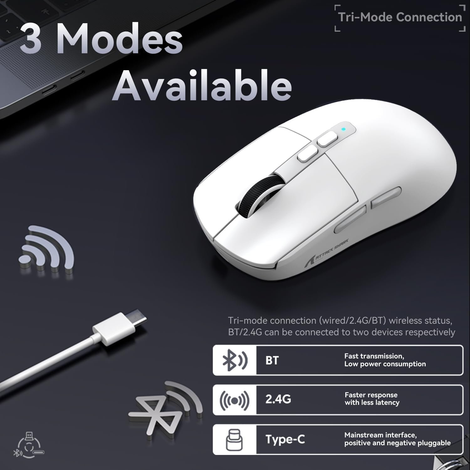 ATTACK SHARK X6 Mouse 49g SUPERLIGHT com dock de carregamento magnético, sensor de jogos PixArt PAW3395, mouse para jogos sem fio/com fio BT/2.4G, 26000 DPI, HUANO Switch, para Win11/Xbox/Mac(branco)