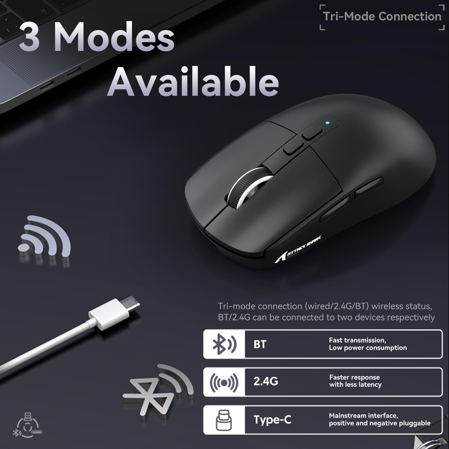 ATTACK SHARK X6 Mouse 49g SUPERLIGHT com dock de carregamento magnético, sensor de jogos PixArt PAW3395, mouse para jogos sem fio/com fio BT/2.4G, 26000 DPI, HUANO Switch, para Win11/Xbox/Mac(preto)