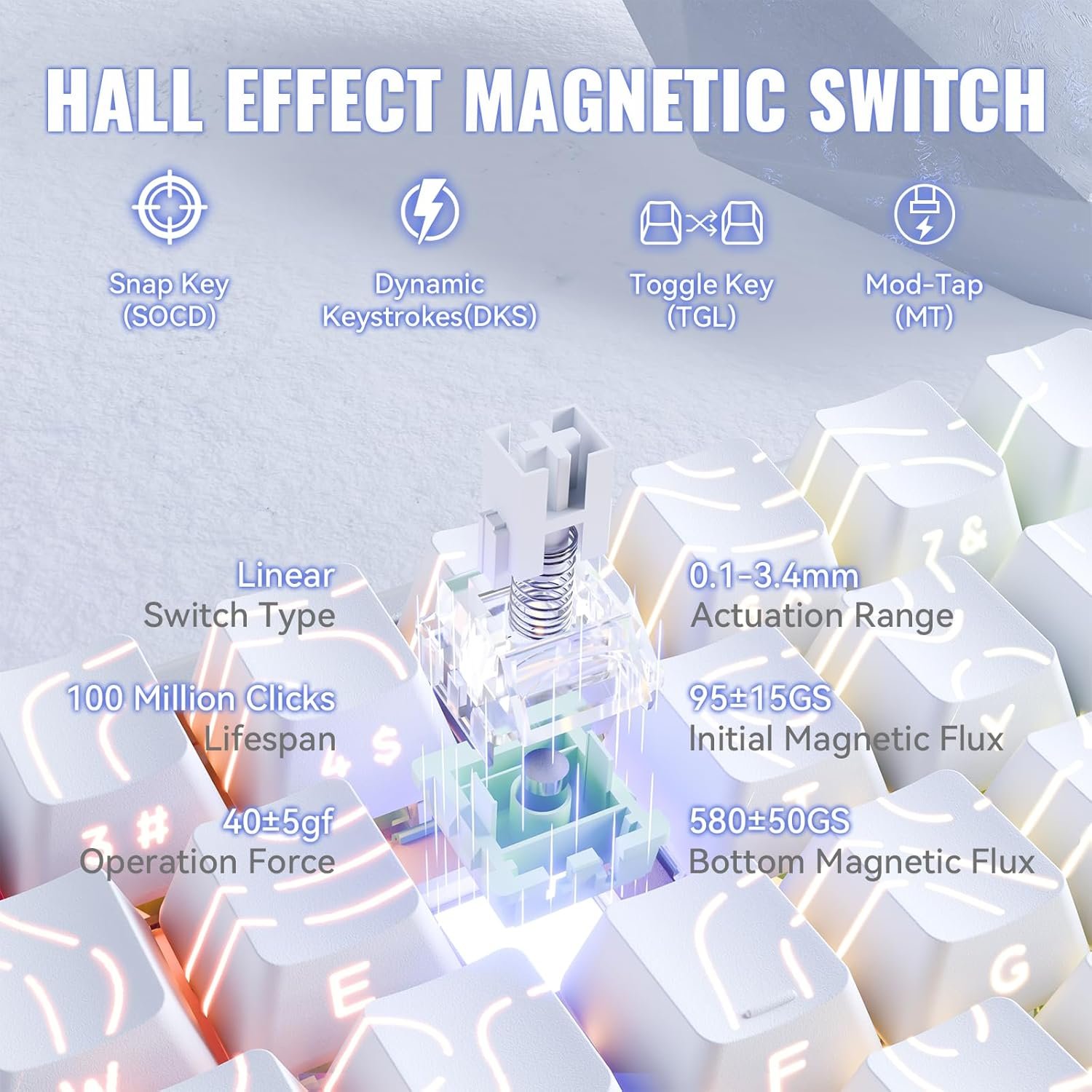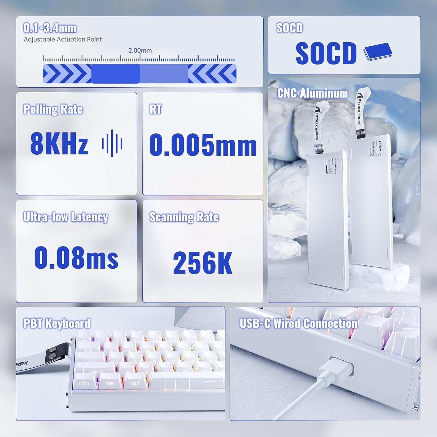 ATTACK SHARK X68 MAX HE Teclado gamer de alumínio com fio de gatilho rápido,precisão de 0,005 mm,interruptor magnético de efeito Hall,taxa de pesquisa de 8000 Hz,latência de 0,08 ms(Contorno Branco)