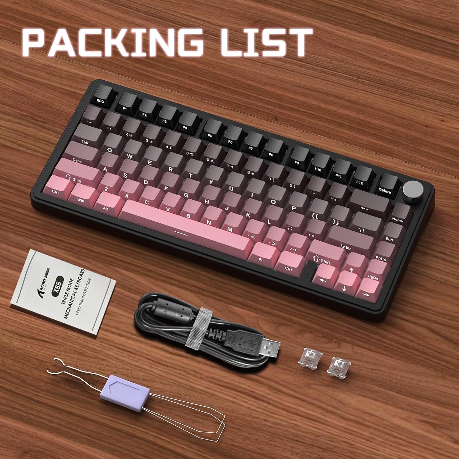 ATTACK SHARK X85 Teclado mecânico para jogos sem fio 75% Gasket com botão,BT5.0/2.4G/USB-C,acolchoamento de cinco camadas,RGB,5000mAh,troca a quente,teclas com impressão lateral (Blackberry)ATTACK SHARK X85 Teclado mecânico para jogos sem fio 75% Gasket com botão,BT5.0/2.4G/USB-C,acolchoamento de cinco camadas,RGB,5000mAh,troca a quente,teclas com impressão lateral (Blackberry)