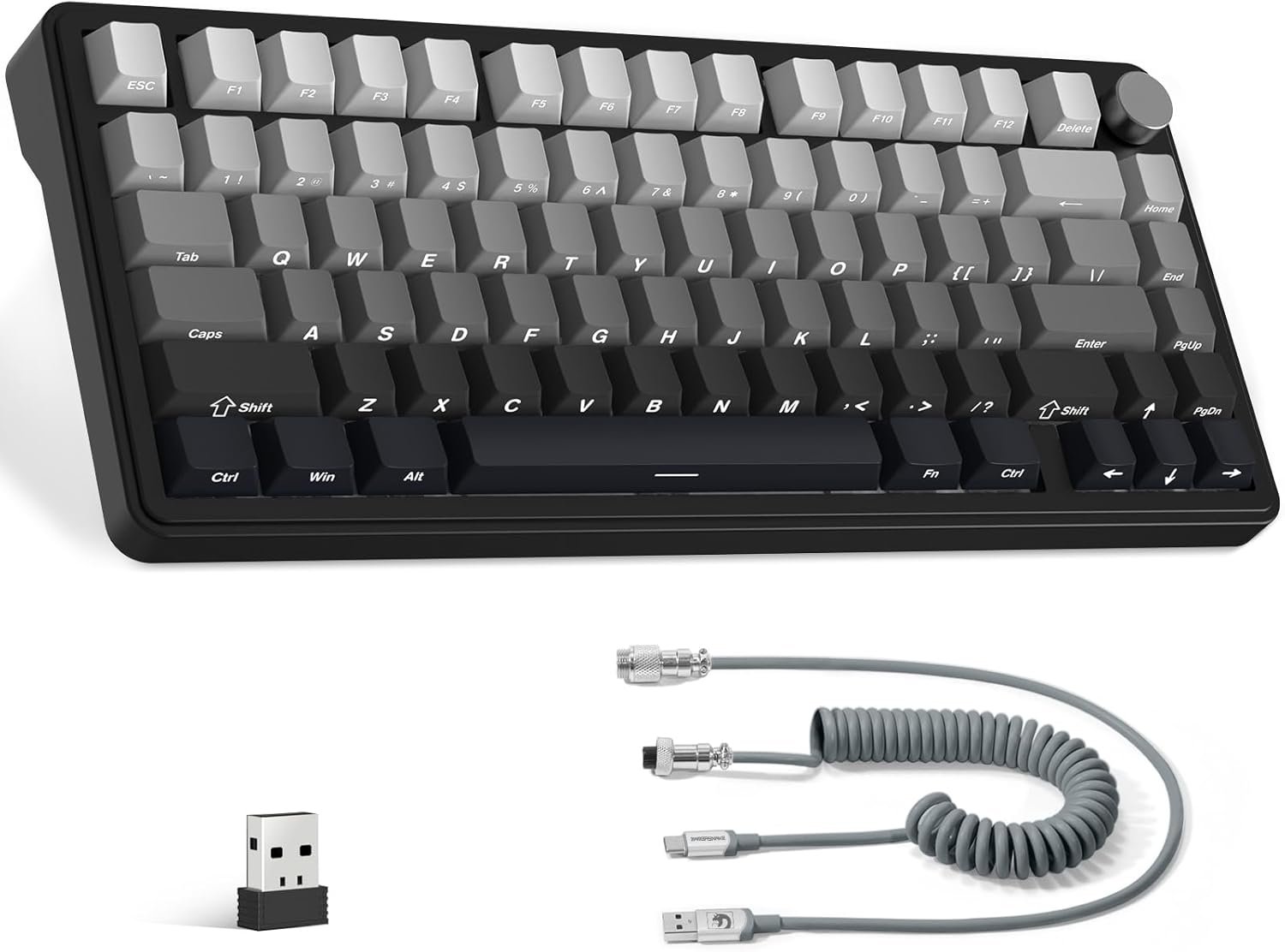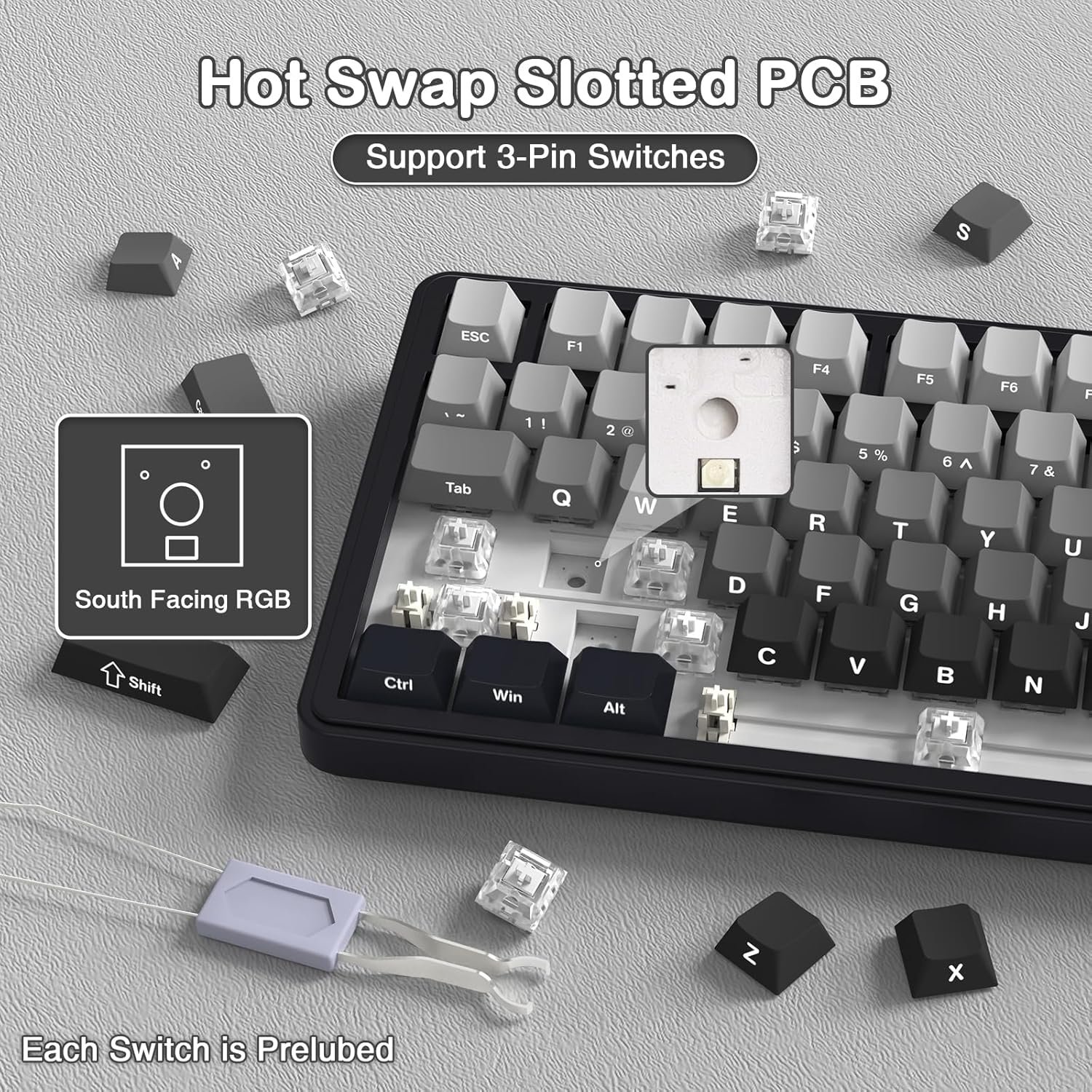 ATTACK SHARK X85 Teclado Mecânico Sem Fio de Jogo com Botão Trocável Quente BT/2.4GHz/USB-C Side Print PBT Keycaps 75% Teclado de Junta RGB Cabo Bobinado Linear Branco Jade Switch para PC/MAC/Win
