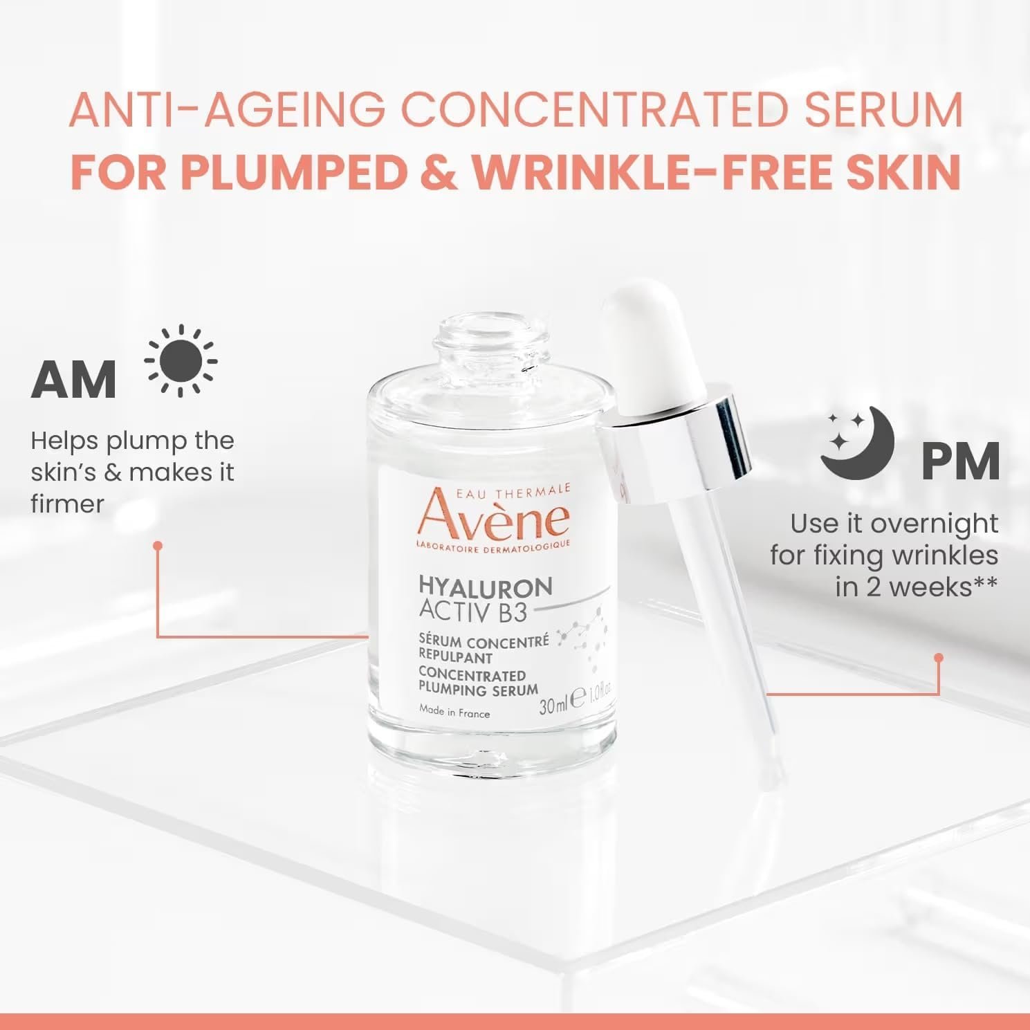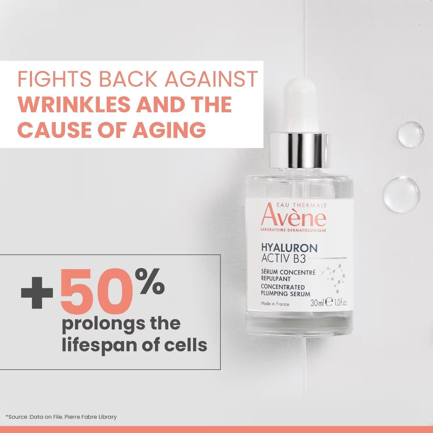 Avène Hyaluron Activ B3 Sérum Concentrado Preenchedor Com Niacinamida, Adenosina, Dois Tipos de Ácido Hialurônico Puro e Água Termal Avène. Preenche e Reduz Visivelmente Rugas, Melhora Elasticidade, Firmeza e Luminosidade da Pele. Indicado para todos os tipos de pele, 30ml