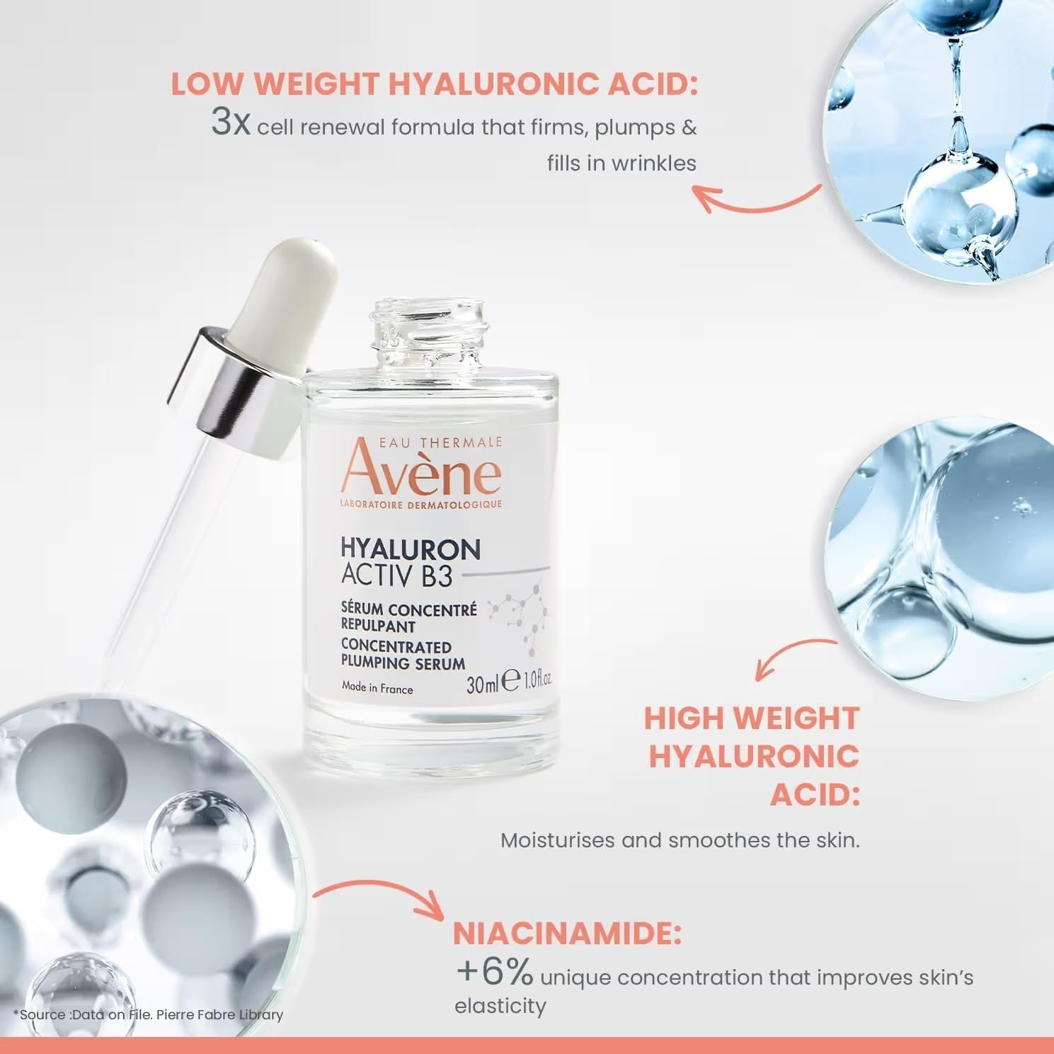 Avène Hyaluron Activ B3 Sérum Concentrado Preenchedor Com Niacinamida, Adenosina, Dois Tipos de Ácido Hialurônico Puro e Água Termal Avène. Preenche e Reduz Visivelmente Rugas, Melhora Elasticidade, Firmeza e Luminosidade da Pele. Indicado para todos os tipos de pele, 30mlAvène Hyaluron Activ B3 Sérum Concentrado Preenchedor Com Niacinamida, Adenosina, Dois Tipos de Ácido Hialurônico Puro e Água Termal Avène. Preenche e Reduz Visivelmente Rugas, Melhora Elasticidade, Firmeza e Luminosidade da Pele. Indicado para todos os tipos de pele, 30ml