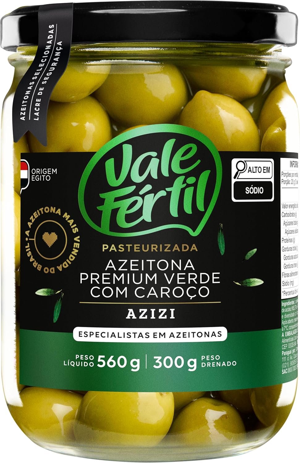 Azeitonas Verdes Premium Azizi Vale Fértil Vidro 300gAzeitonas Verdes Premium Azizi Vale Fértil Vidro 300g