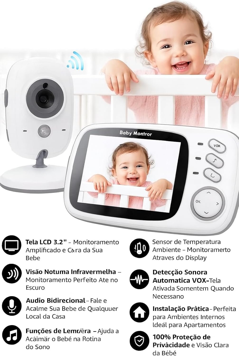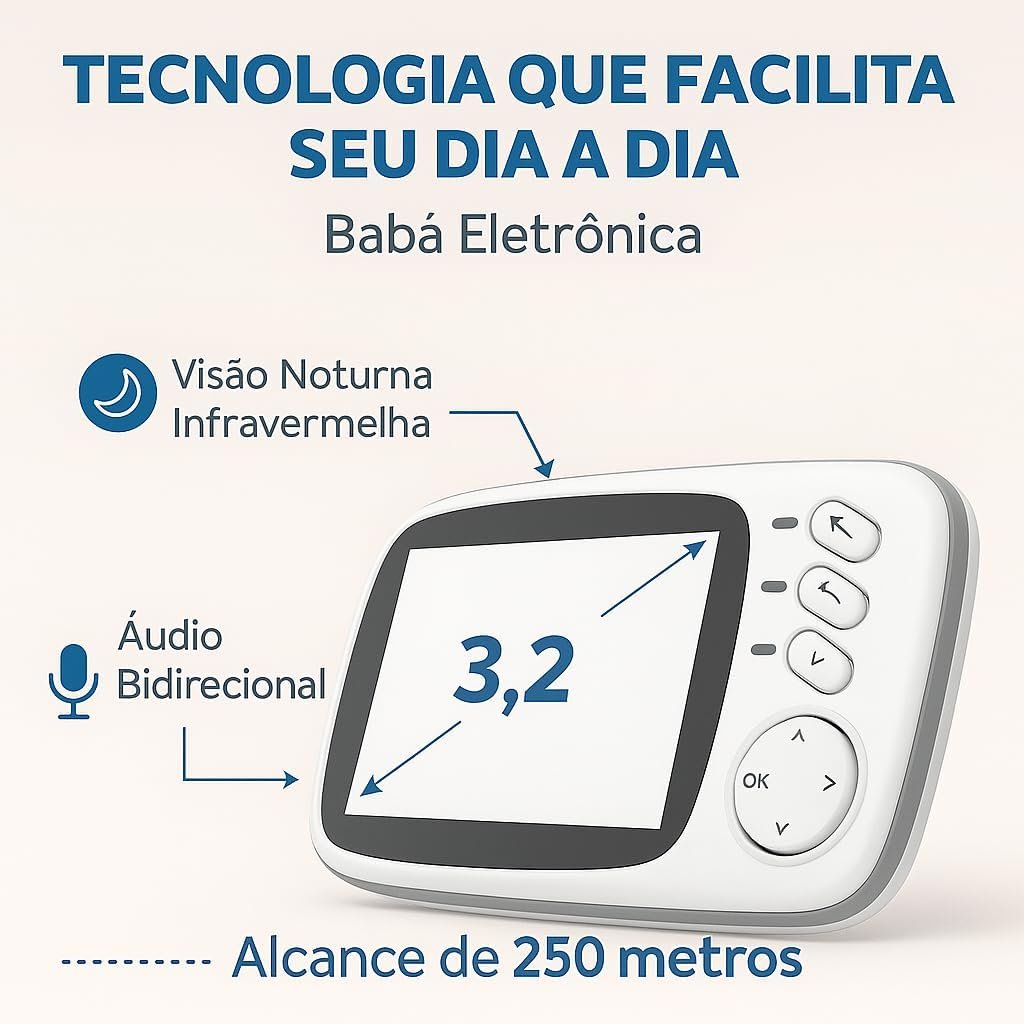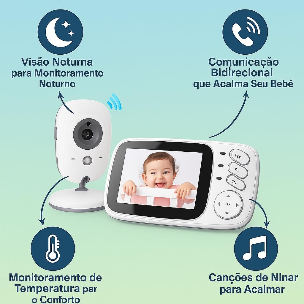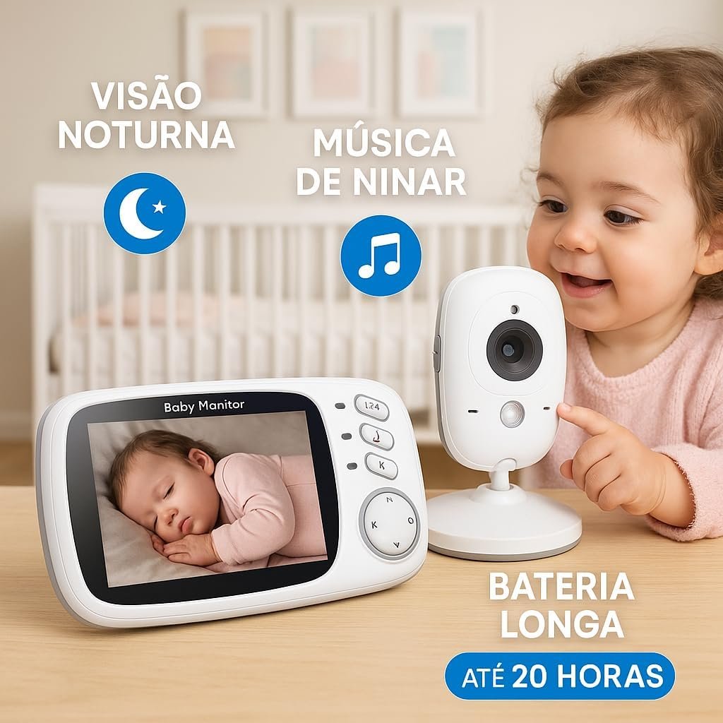 Babá Eletrônica Câmera para Bebês com Tela de 3.2″ e Visão Noturna