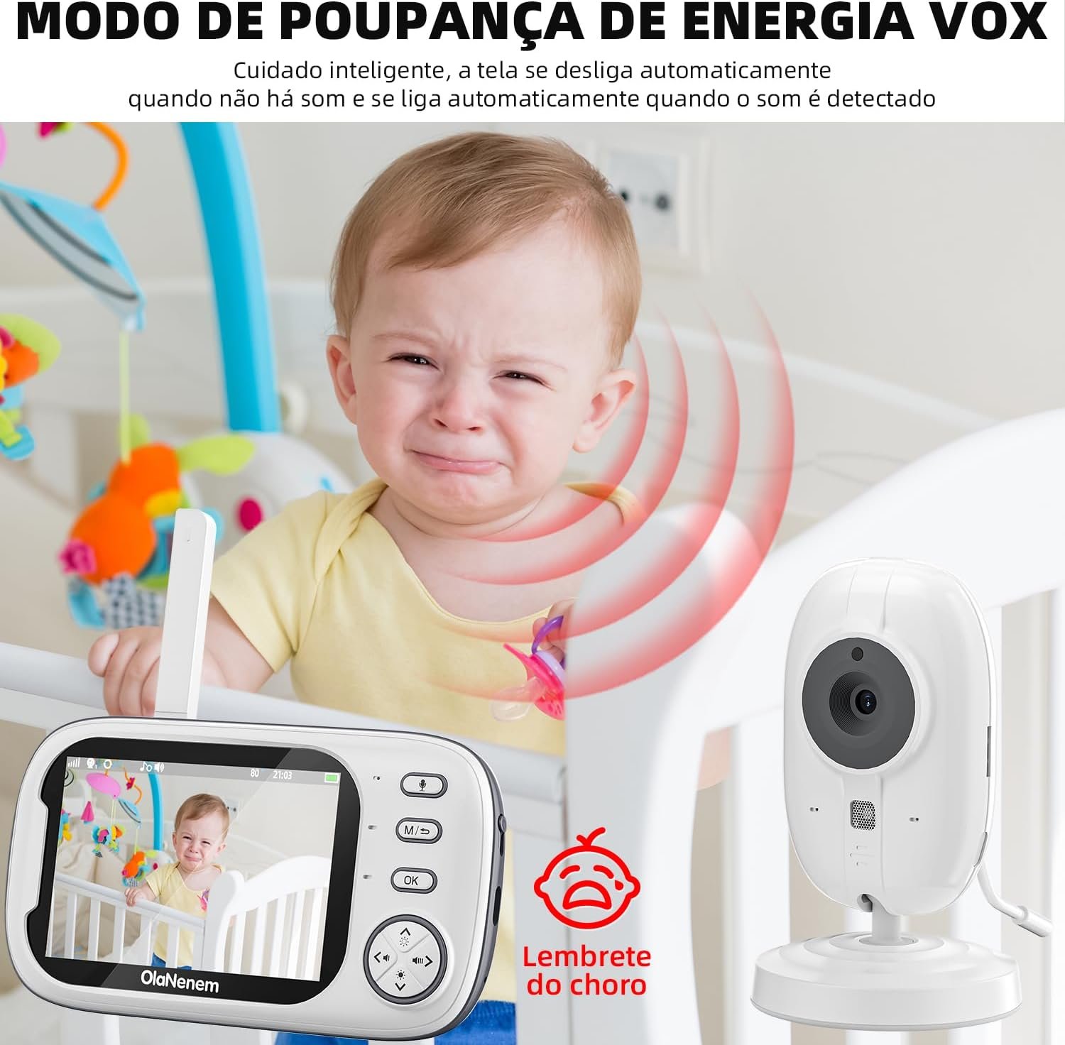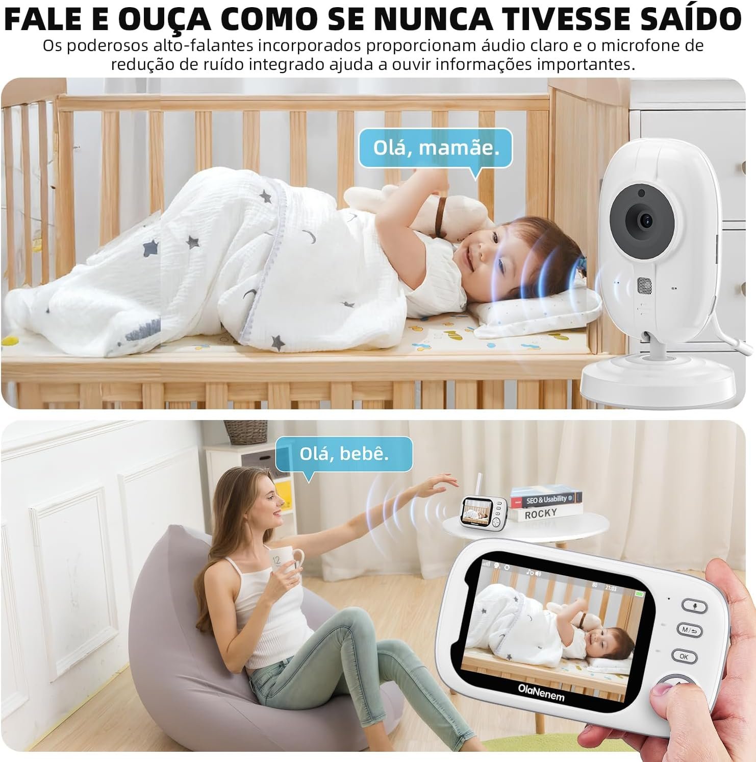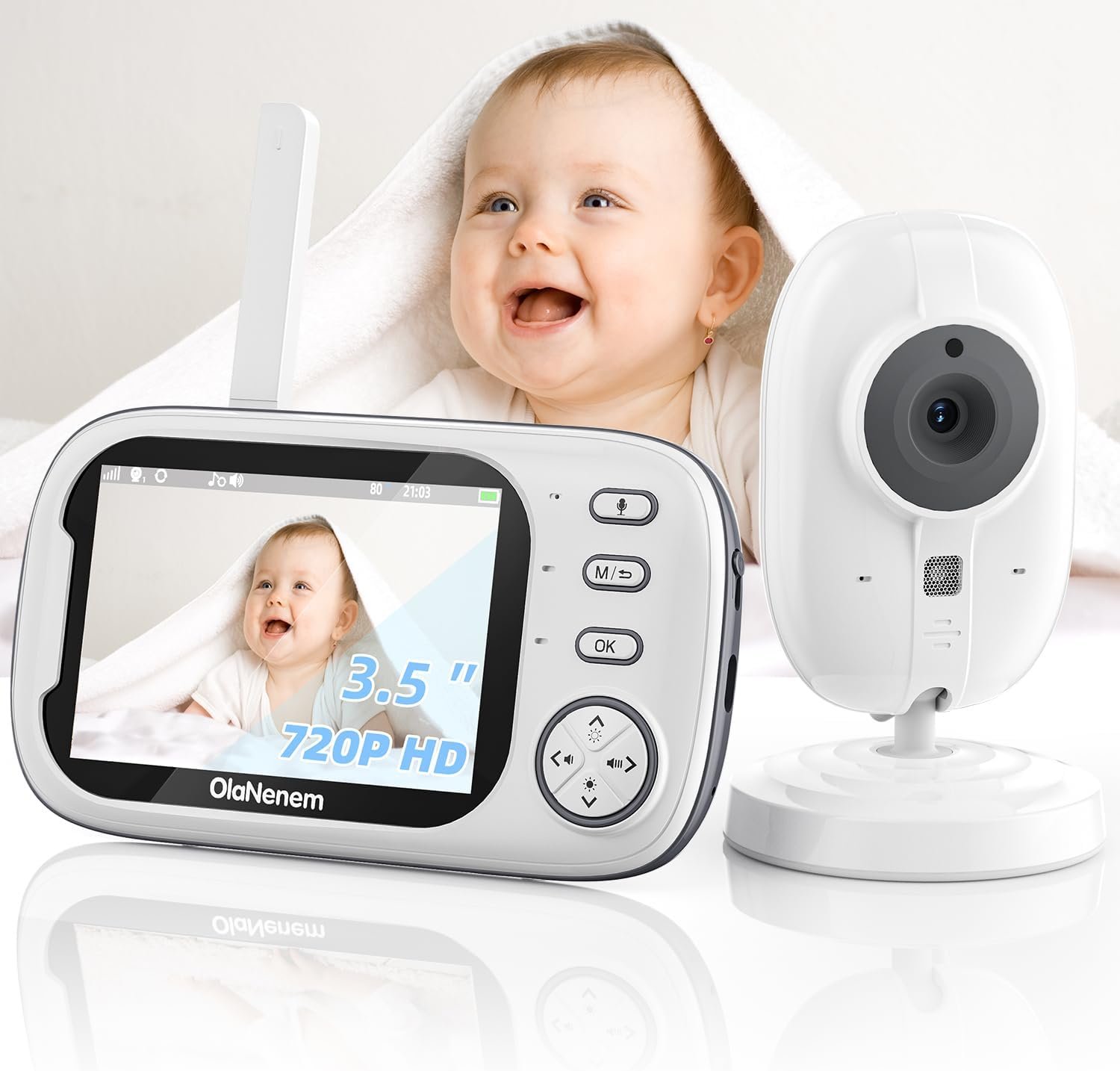 Babá Eletrônica OLANENEM, Tela 3.5″ 720P, Visão Noturna, Áudio Bidirecional, Monitoramento Temperatura, 8 Canções de Ninar para Recém-Nascidos