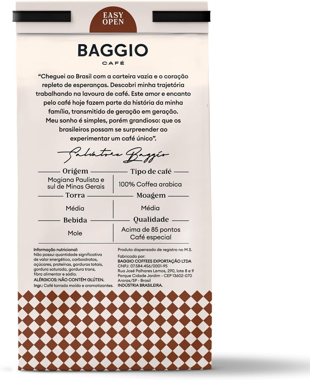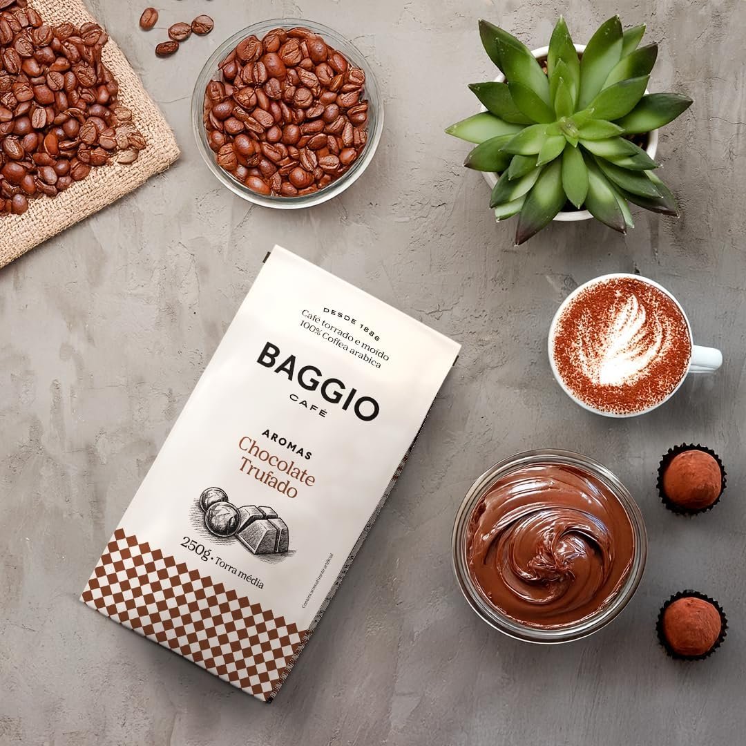 Experimente o delicioso Baggio Café Torrado e Moído sabor Aroma de Chocolate Trufado. Com grãos selecionados e torra especial, cada xícara oferece um aroma irresistível e um sabor encorpado. A embalagem de 250g garante frescor e qualidade em cada preparo. Aproveite momentos especiais com o café perfeito para os amantes de um bom café com um toque de chocolate.