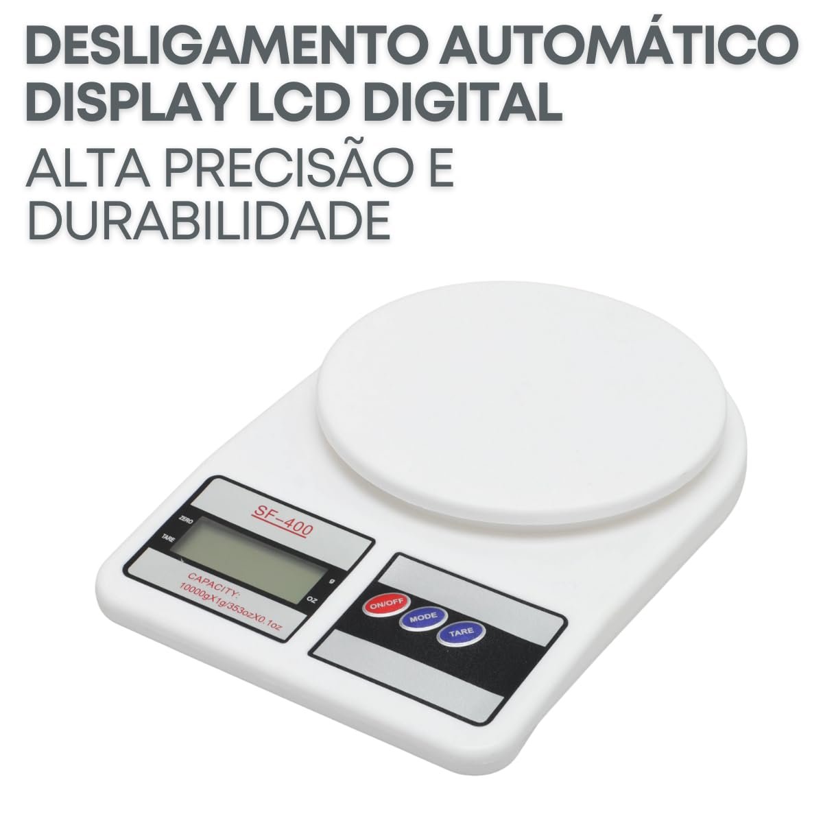 Balança de Cozinha Digital para Alimentos Portátil em Inox Resistente a Água Com Base Antiderrapante e Visor de Alta Definição Pesagem de 1g até 10kg Fit Premium