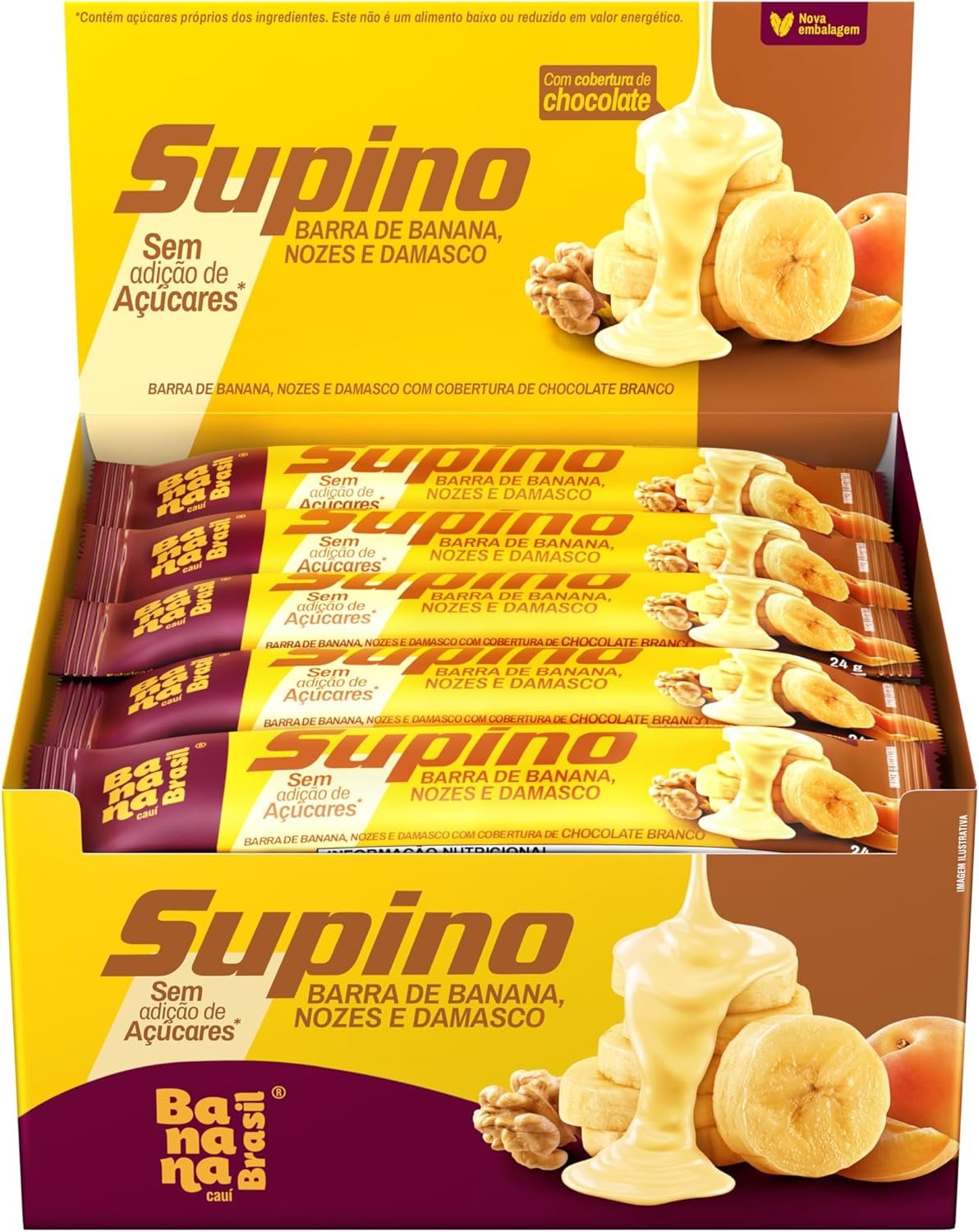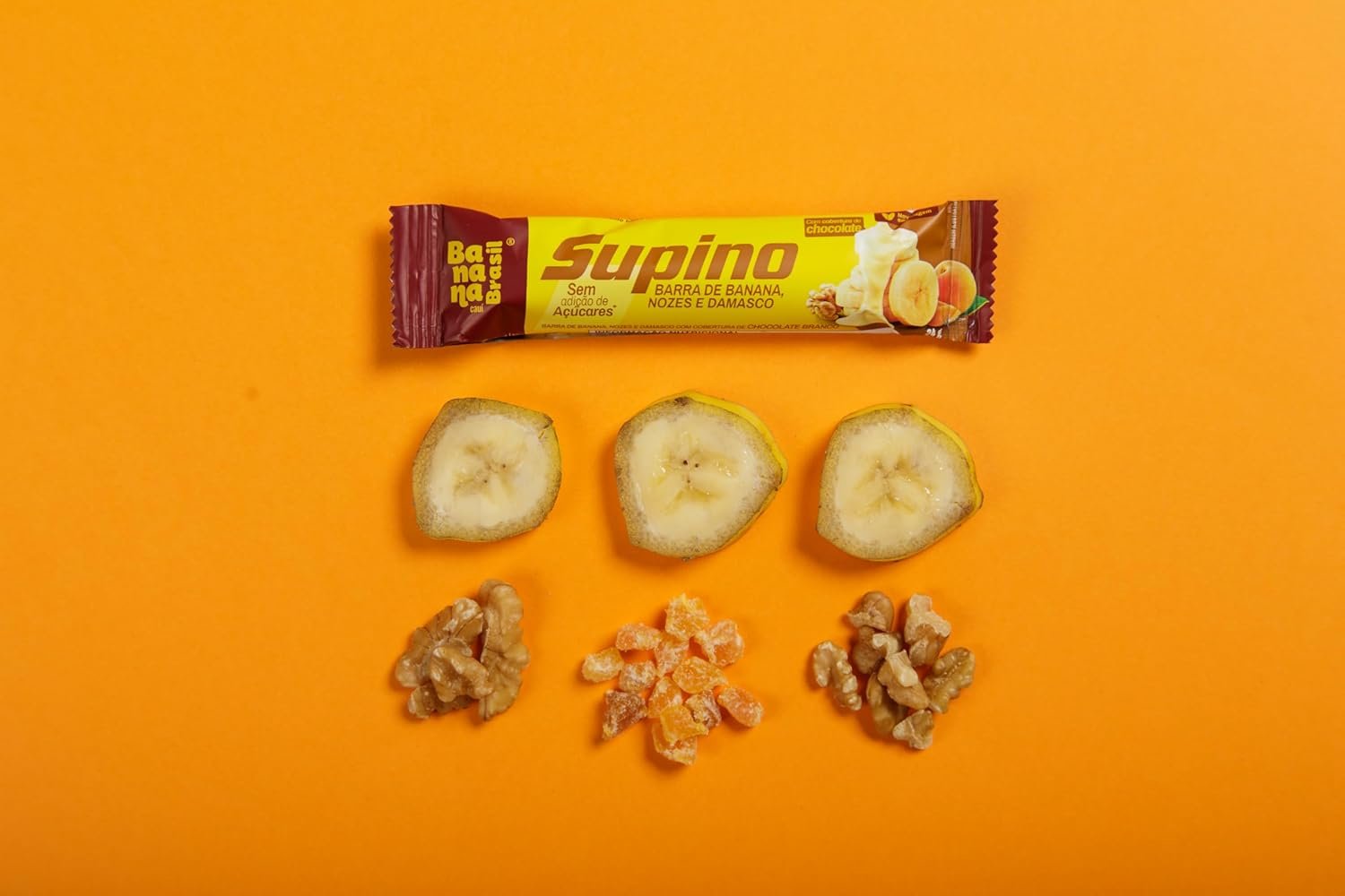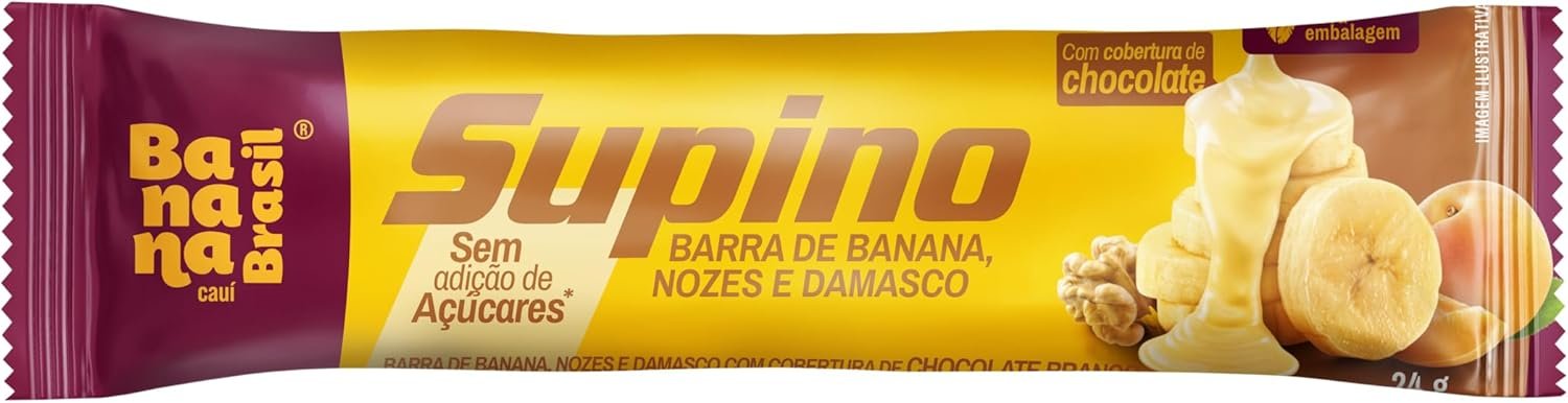 Banana Brasil – Barra De Frutas Supino Zero Banana Nozes e Damasco Com Cobertura Chocolate Branco – (com 20 unidades de 24g)