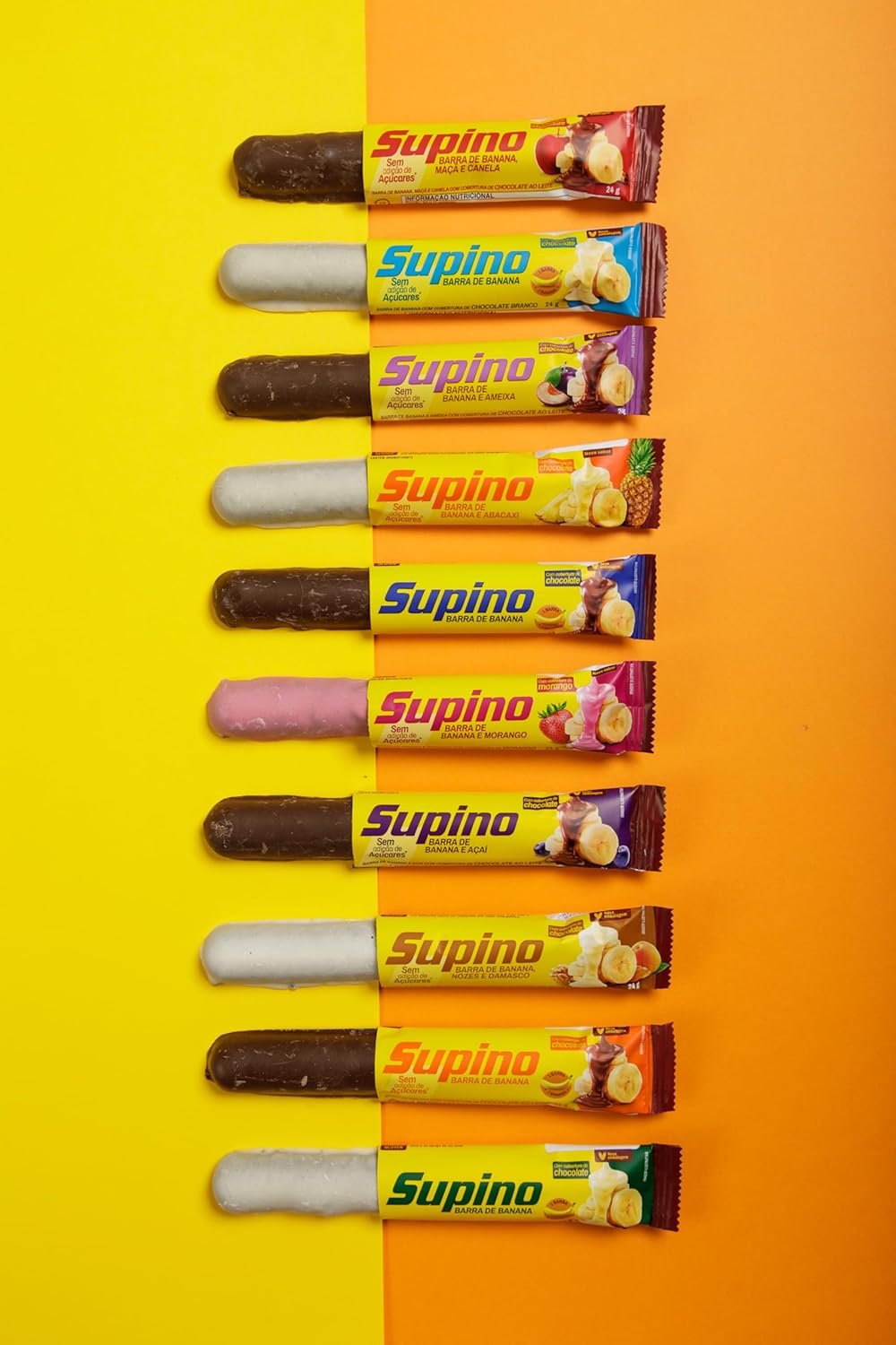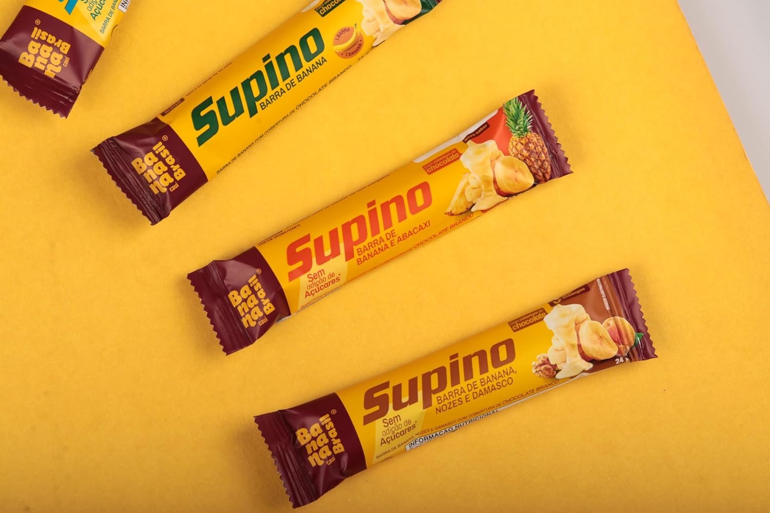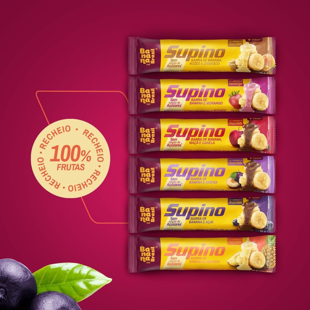 Banana Brasil – Barra De Frutas Supino Zero Banana Nozes e Damasco Com Cobertura Chocolate Branco – (com 20 unidades de 24g)