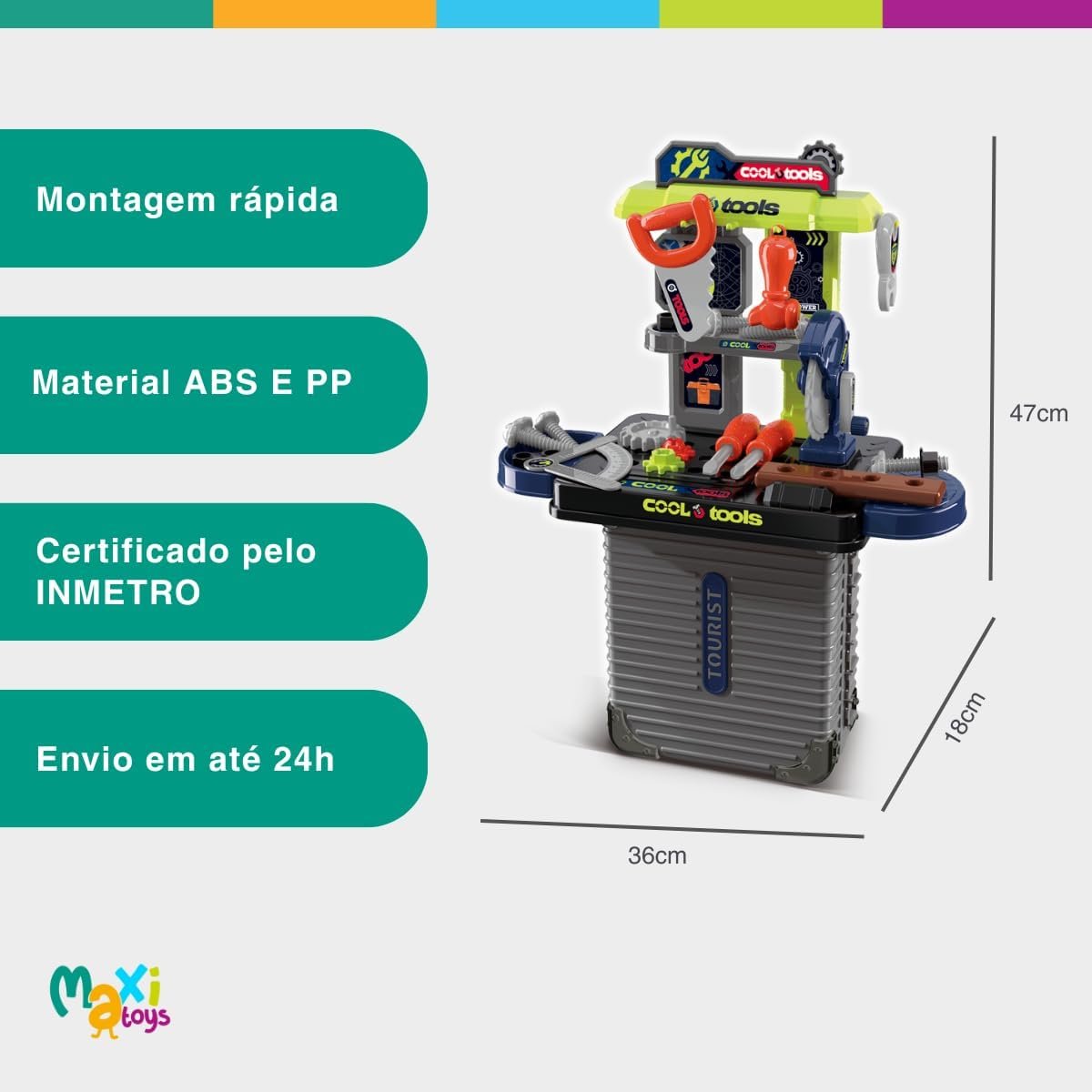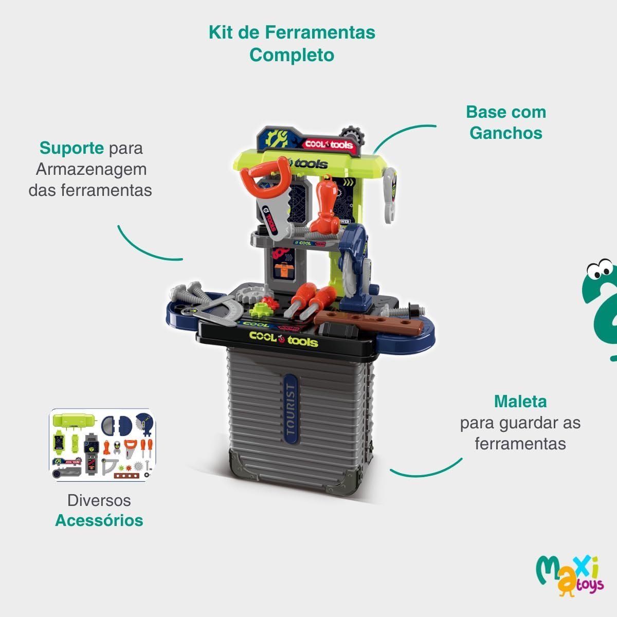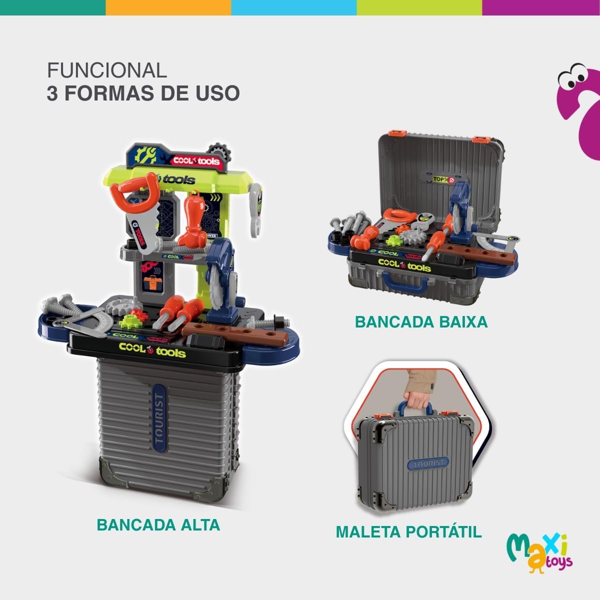 Transforme a brincadeira das crianças em momentos de aprendizado e diversão com a Bancada de Ferramentas Infantil 3 em 1 Maleta 31pç da Maxi Toys! Com design colorido e seguro, esta bancada é perfeita para estimular a criatividade dos pequenos enquanto desenvolvem habilidades motoras e cognitivas. Com 31 peças, incluindo ferramentas e acessórios, esta bancada é ideal para criar um ambiente lúdico e educativo. Garanta já esta experiência única para os pequenos construtores!