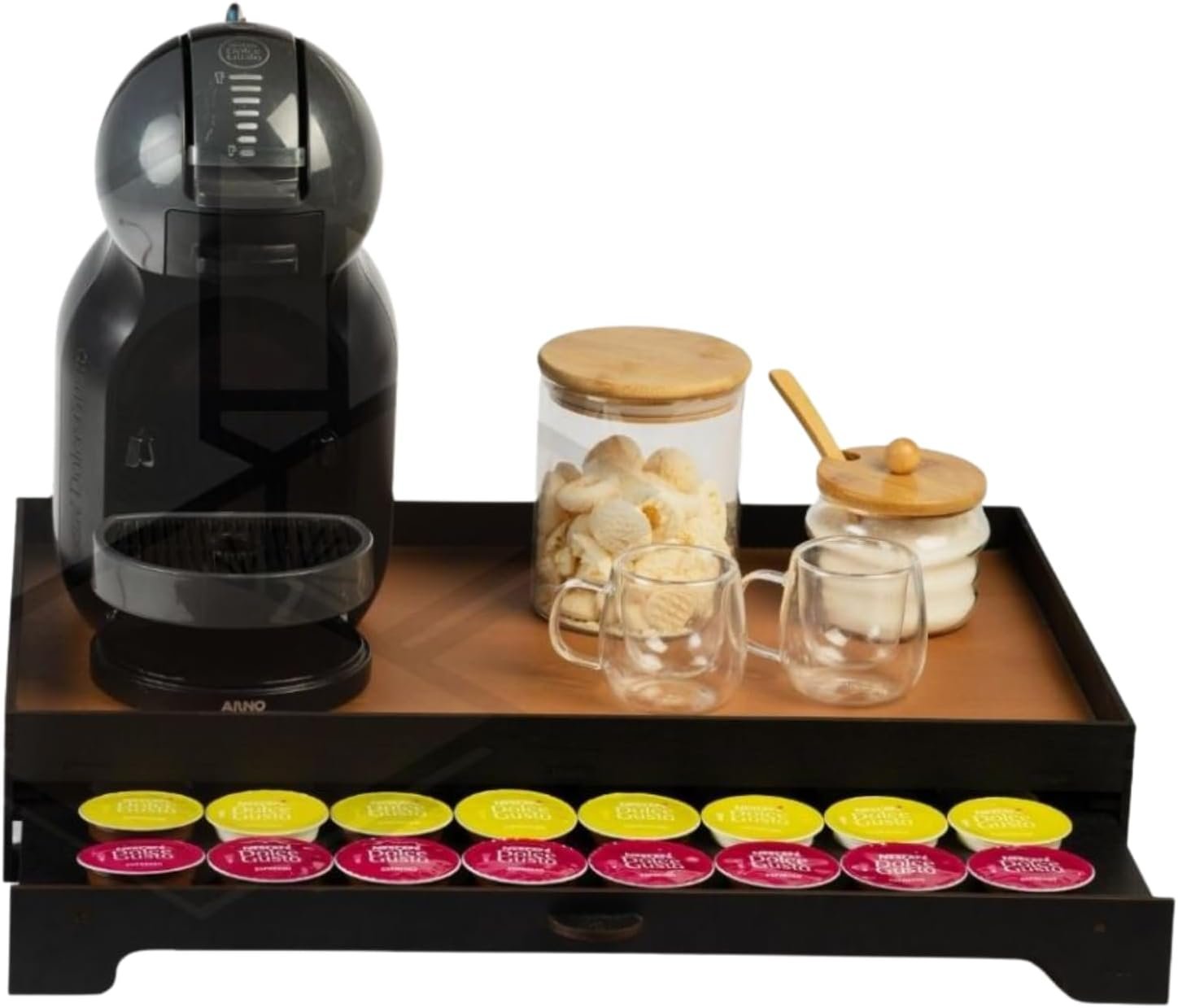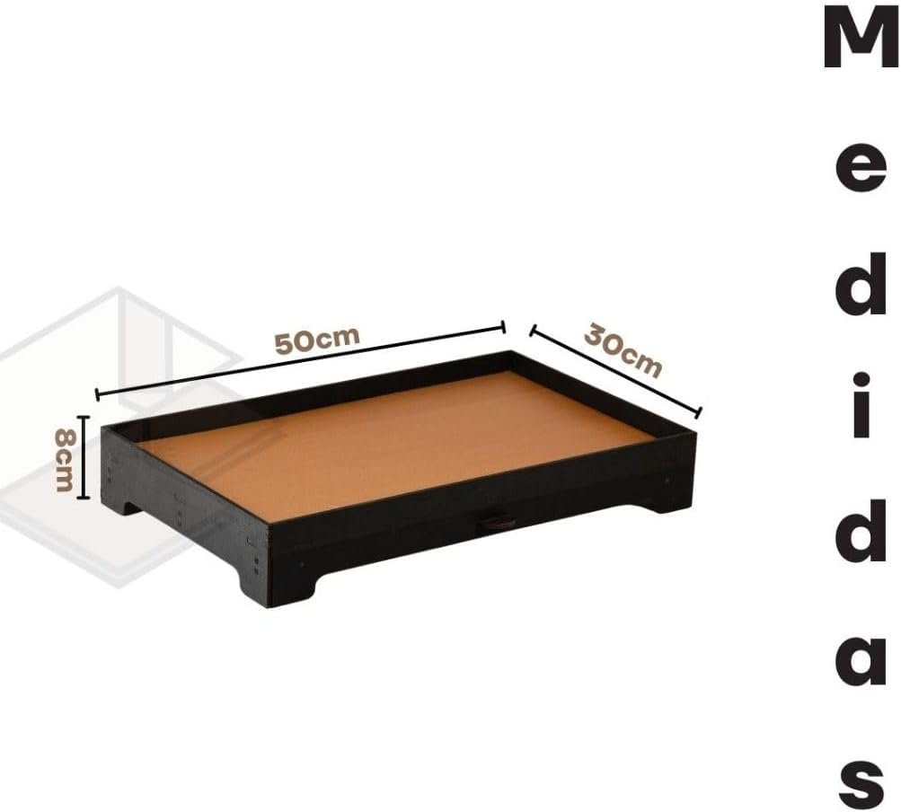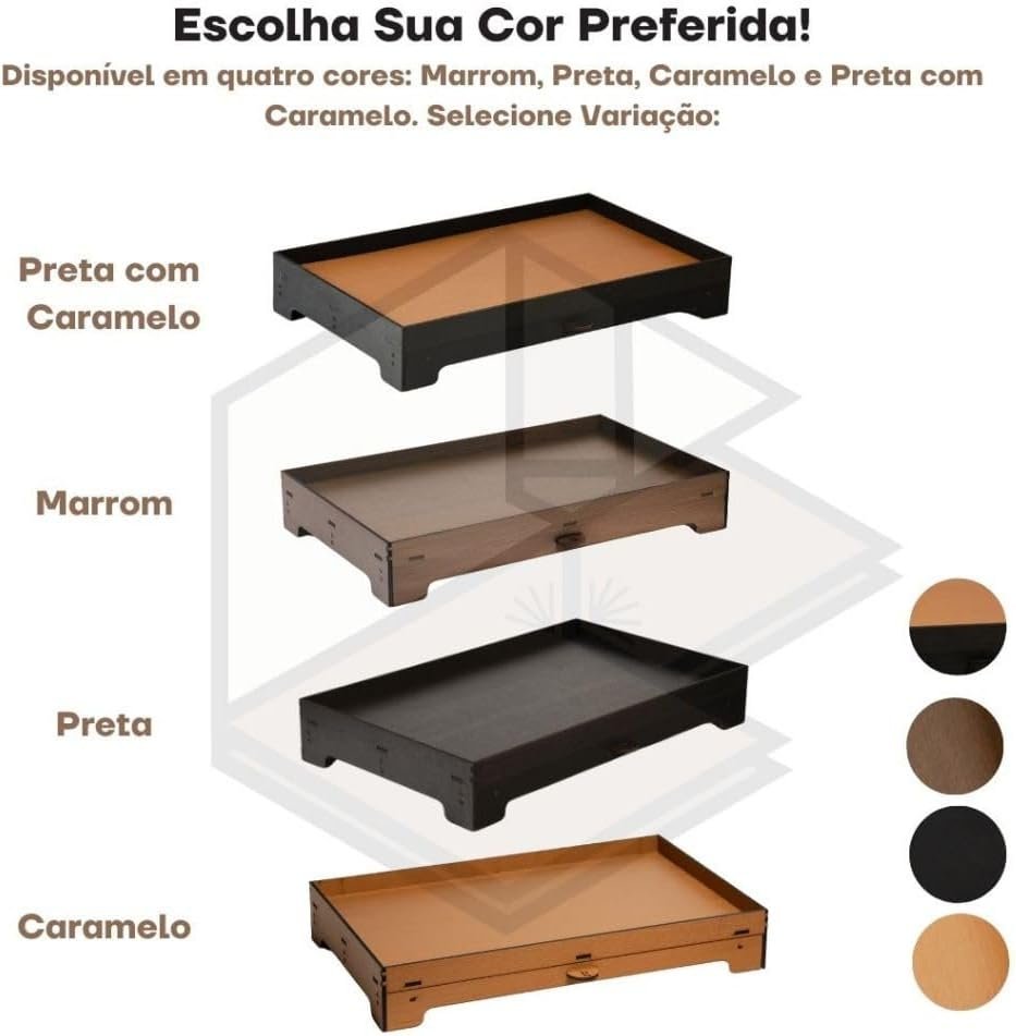 Bandeja Cantinho do Café em MDF, Preto com Caramelo, 50x30x8 cm, 1,25 kg, Acabamento em Gel, Porta 40 Cápsulas com Gaveta