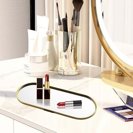 Bandeja Decorativa com Espelho Multiuso Oval Espelhada Decoração Sala Mesa Premium